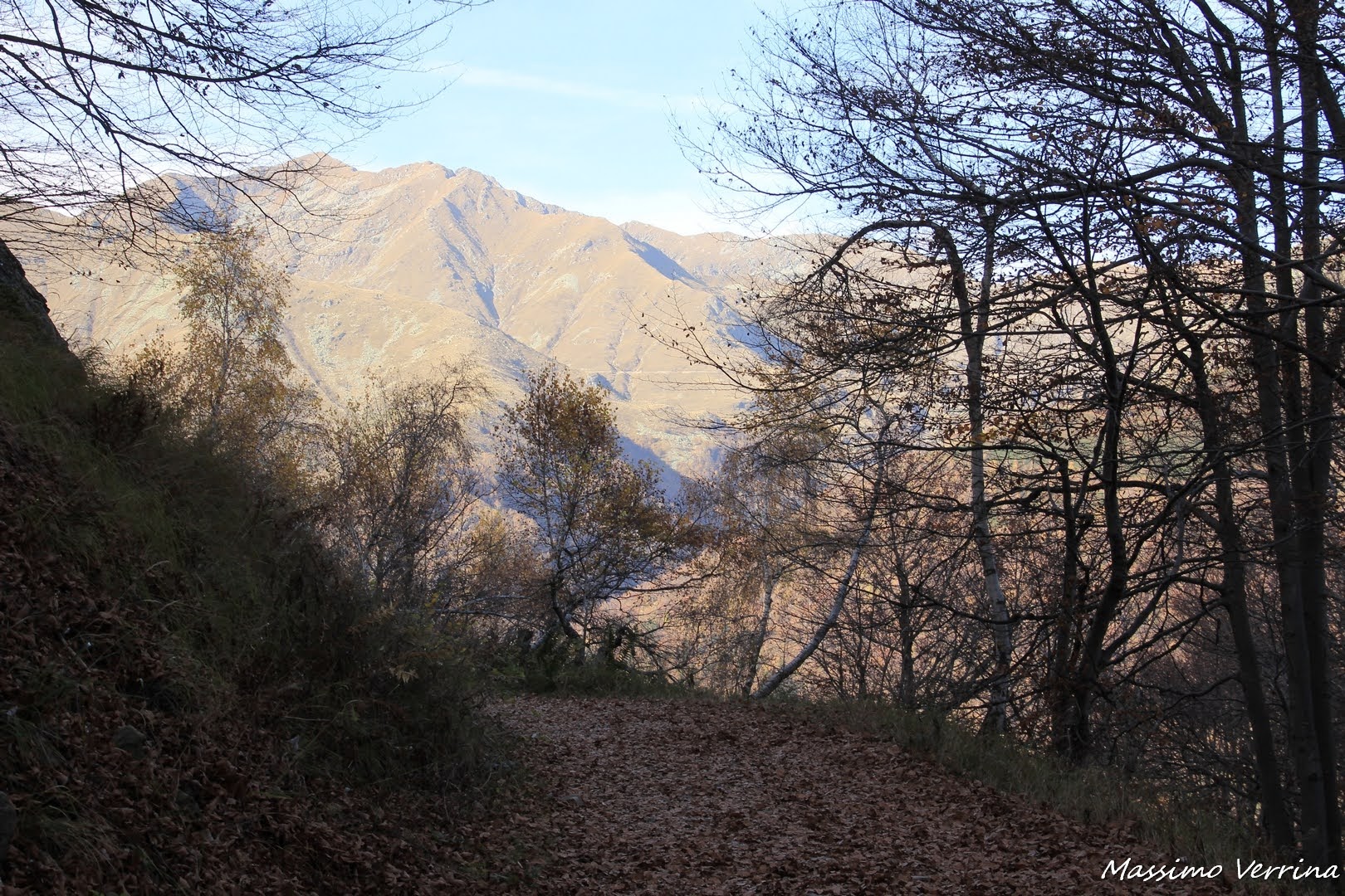 Sull’altro versante, quello esposto al sole, qualche colore autunnale ancora si faceva notare, creando sfumature e contrasti che filtravano tra il grigio dei rami ormai spogli…