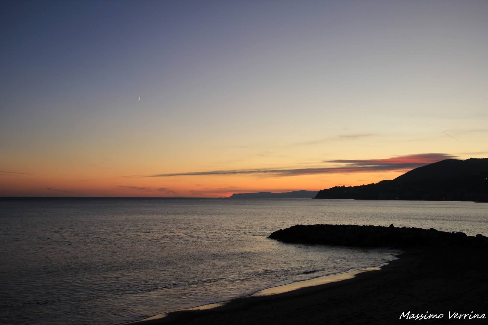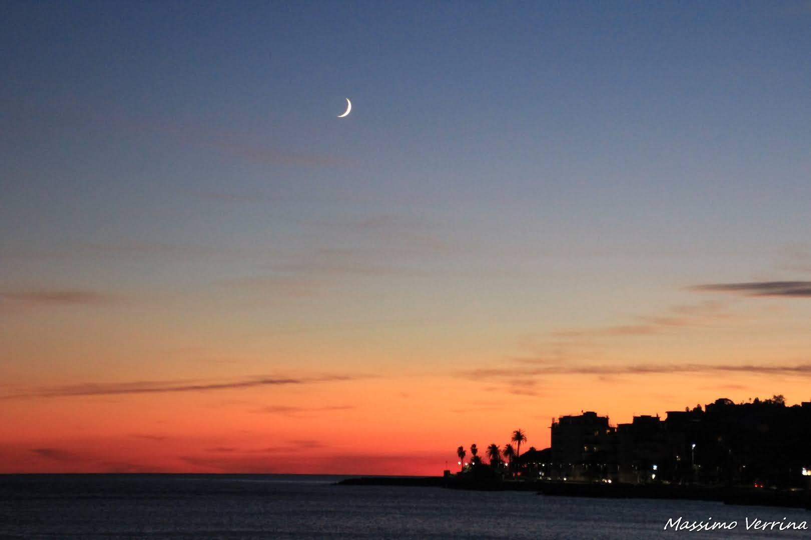 tu dici Africa ed è vero! le palme e il cielo rosa! Preferisco questi colori al tramonto acceso, non so perchè, forse sono riposanti e quasi trascendenti, e sono la frazione di passaggio verso la notte. Il mare assume l’aspetto di una seta immensa le cui onde diventano pieghe: m’impressiona. Molto bella la foto della luna nuova. Grazie Max cogli delle sfumature di grande bellezza! buon lunedì!