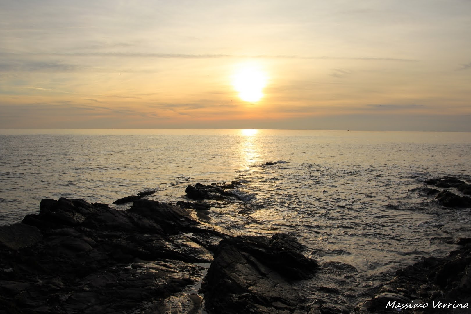 il primo scatto…il mare con la luce gialla…quasi dorata che si riflette sull’acqua… è molto bella… sembra davvero che riempia di pace e serenità i battiti del cuore…