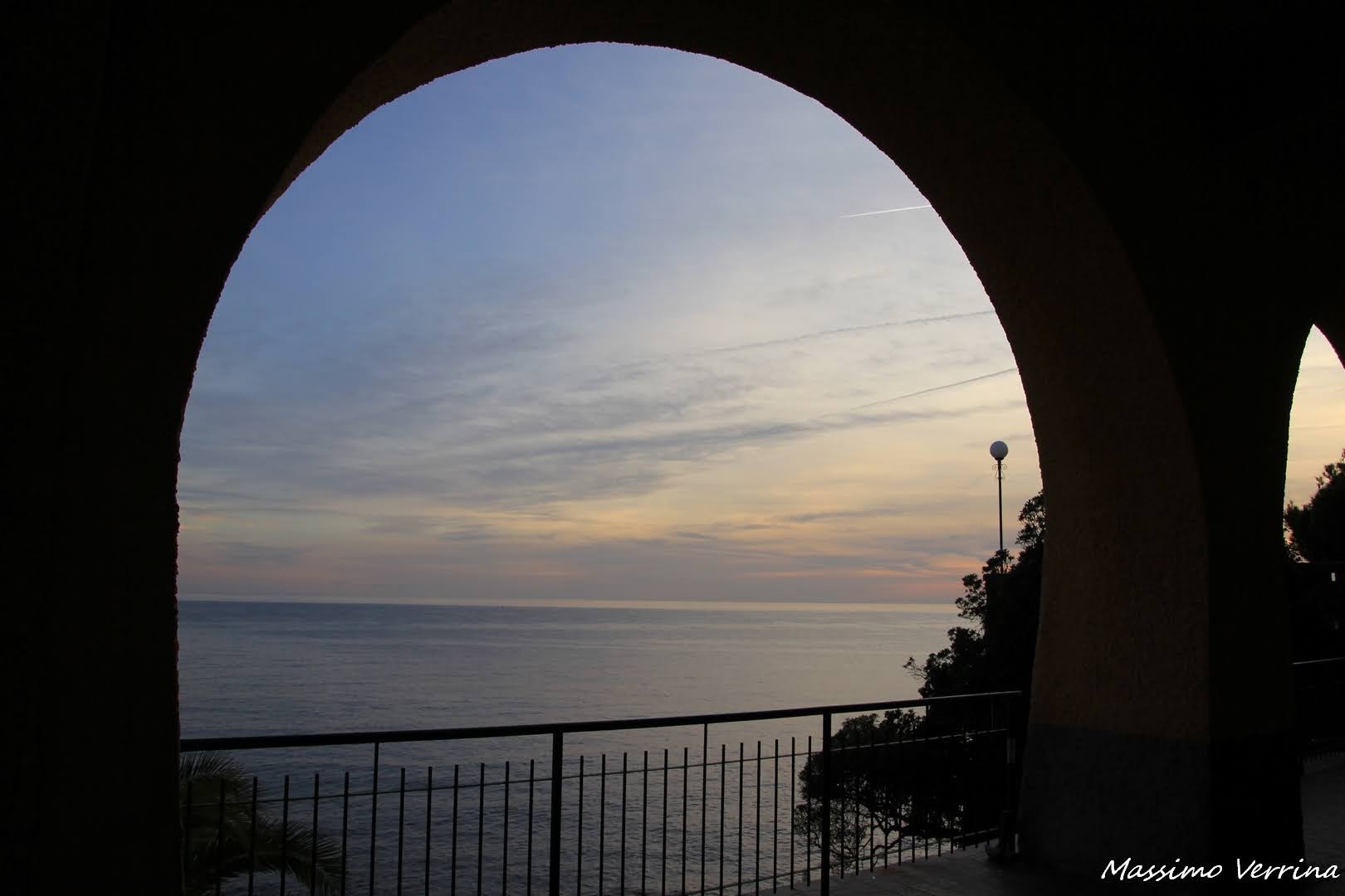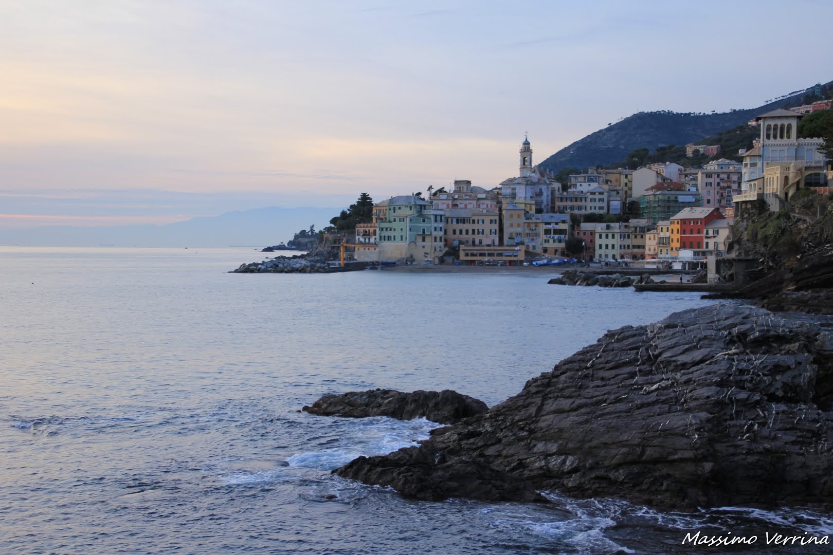 Da questa scogliera si può ammirare il borgo di Bogliasco nella sua interezza, lo cogliamo mentre vira verso l’ora blu, con quella inconfondibile gradazione che accoglie gli sguardi degli amanti, abbracciati in un canto d’amore che si vorrebbe eterno…