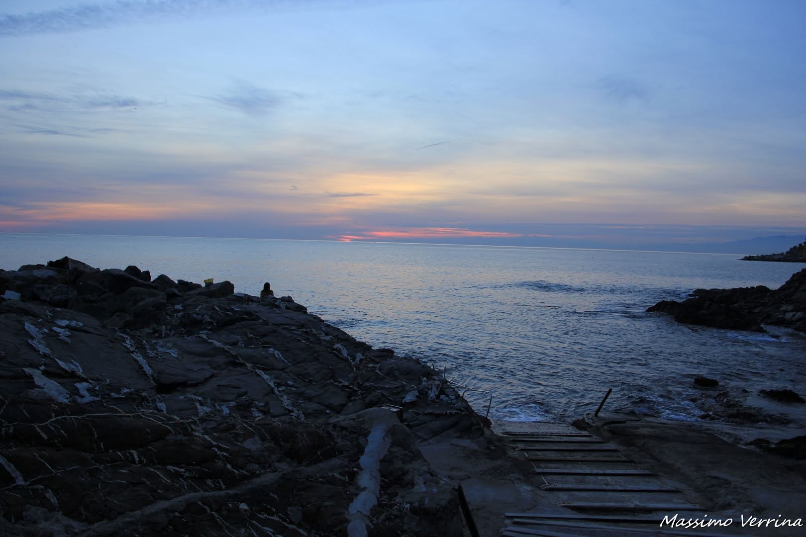 Mi sposto nella parte più alta della scogliera per farvi osservare quella particolarità a cui accennavo ieri, ovvero questa bellissima location sul mare, un piccolo terrazzino dal sapore tropicale avvolto nelle luci dell’ora blu….