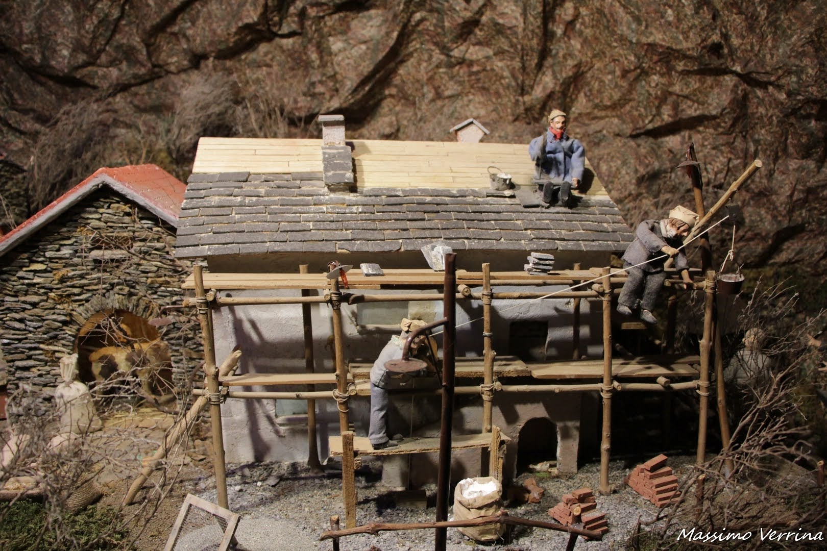 Non manca neppure un cantiere edile, con tanto di operai impegnati nella costruzione di una casa. C’è anche l’uomo sul tetto intento a posizionare le tegole, non manca proprio nulla in questo Presepe…