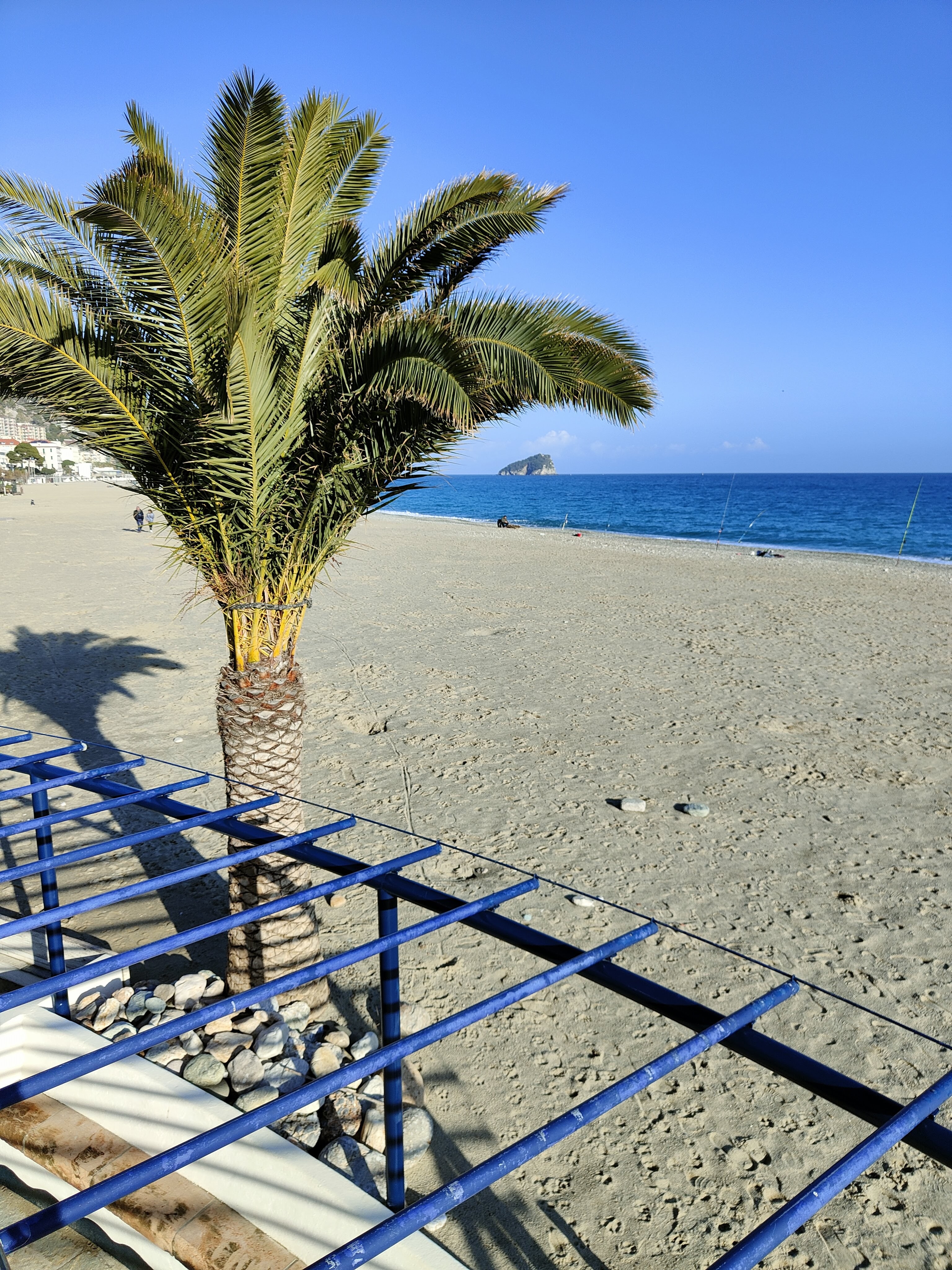 Ma per voi che amate il mare, ecco da questo molo il bellissimo panorama che potete osservare, ve lo farò conoscere attraverso due distinti scatti, in questo primo scatto ho voluto includere la palma che abbraccia l’isolotto, creando una scenografia particolare, dai toni romantici…😊😉