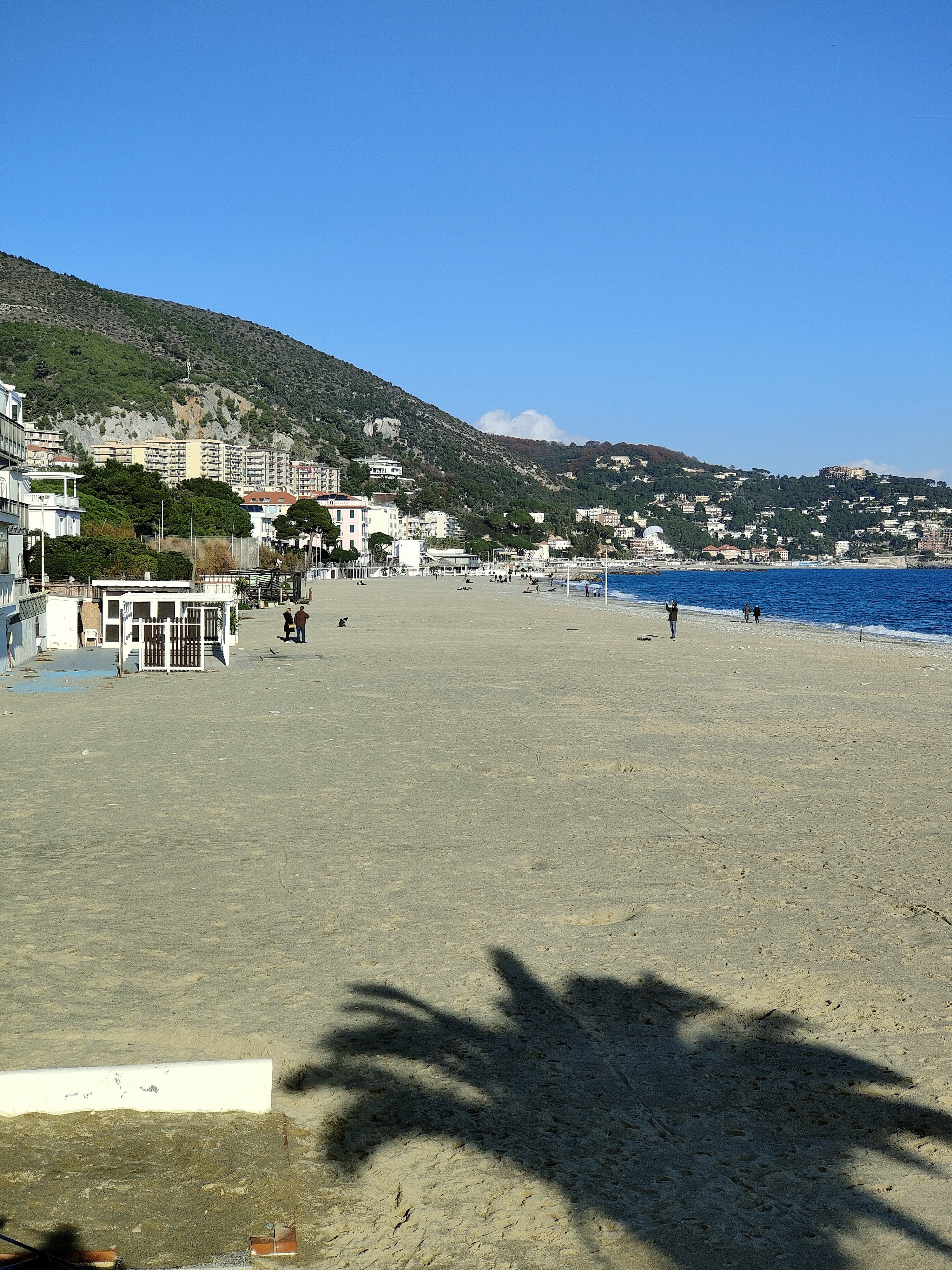 Con questa seconda immagine invece vedete la spiaggia nella sua interezza. Tenete presente che d’estate qua vedreste solo cabine e ombrelloni, il paesaggio così come lo vedete ora è possibile scorgerlo solo durante la stagione invernale, la migliore a mio avviso per cogliere la vera bellezza della mia Liguria…