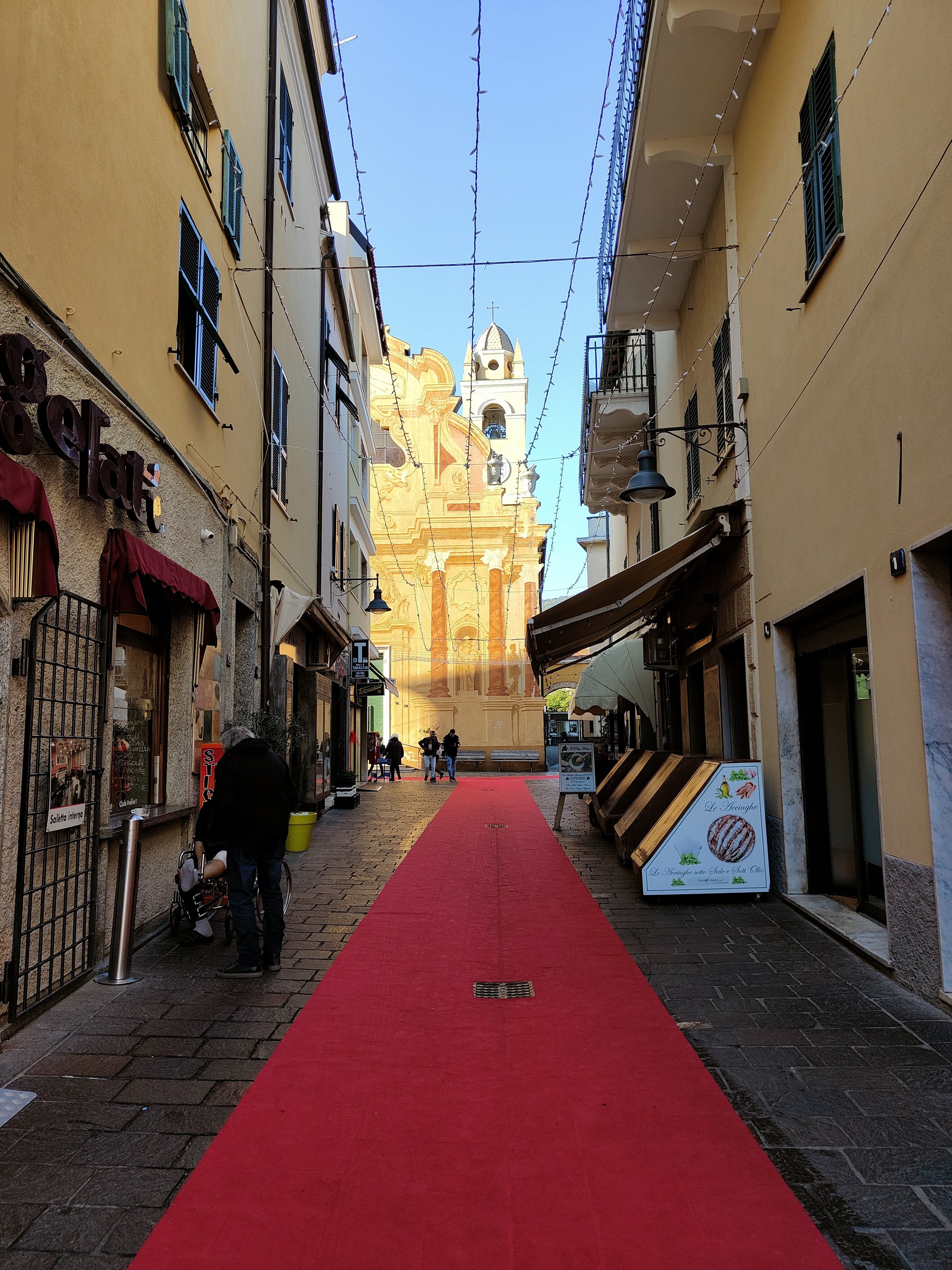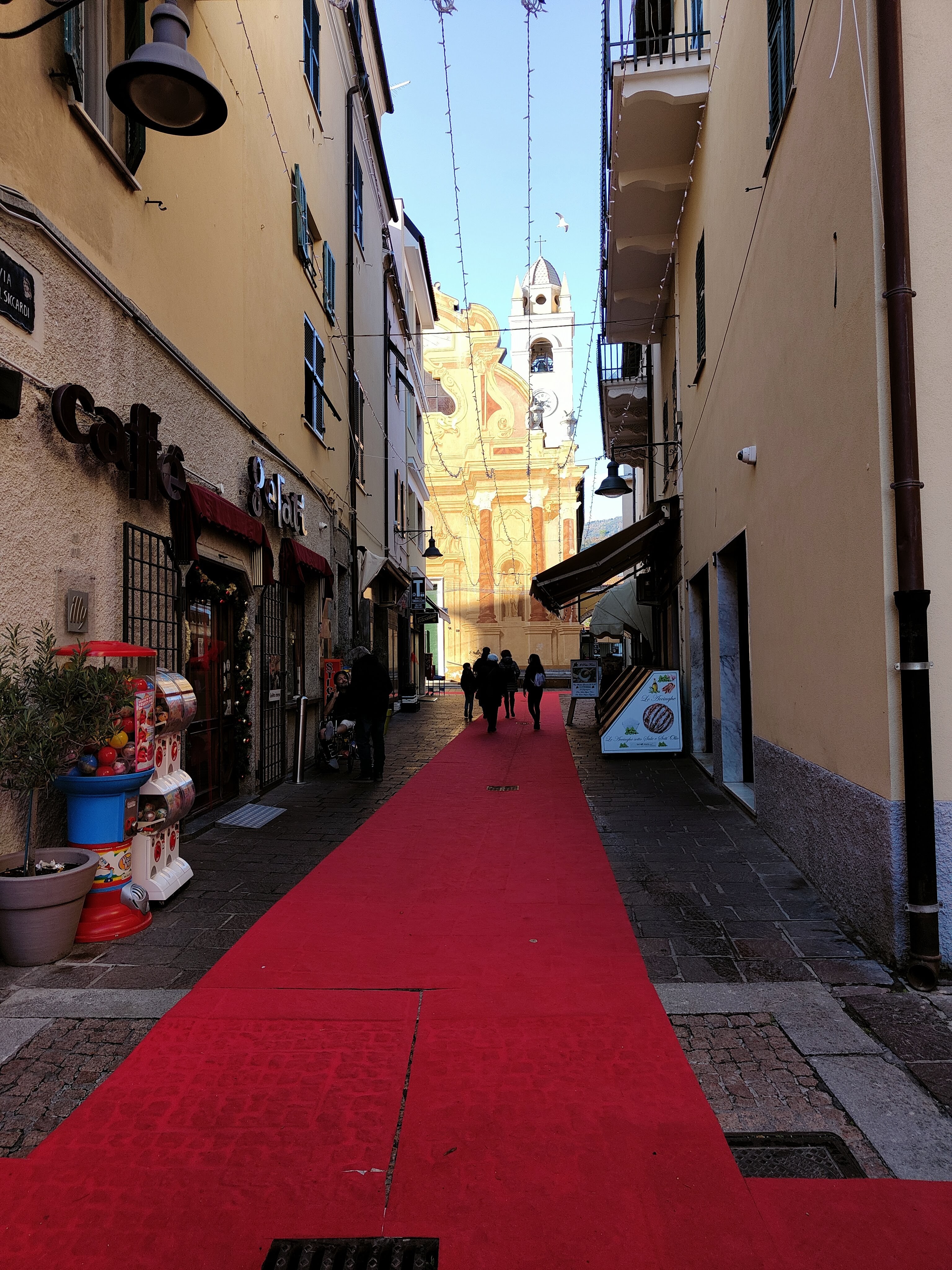 il tappetto rosso delle vie di Spotorno… è ideale per fare anche qualche sfilata di moda… 😉😂 o potevano sfilare diversi babbi natale per la gioia dei bambini…