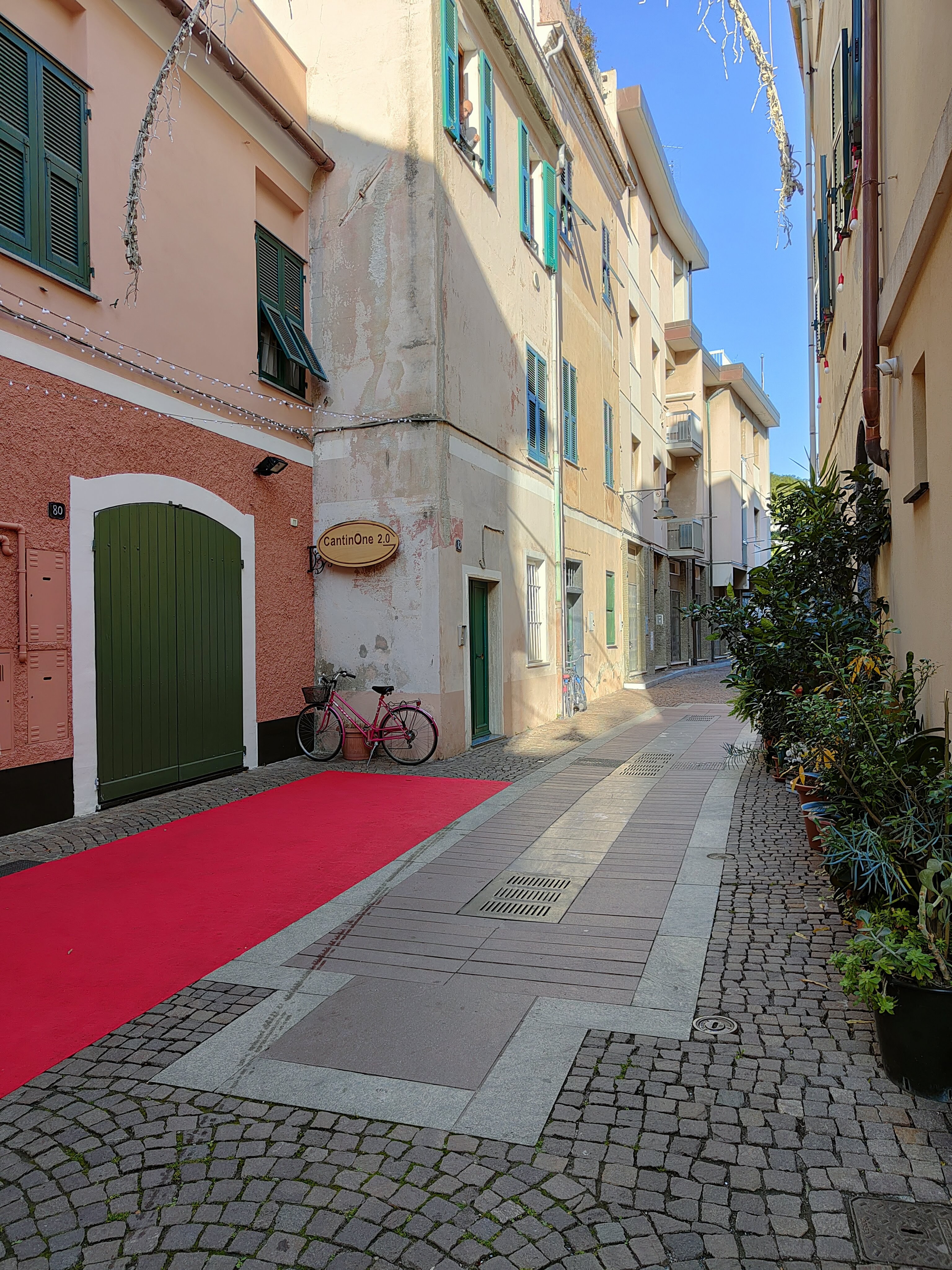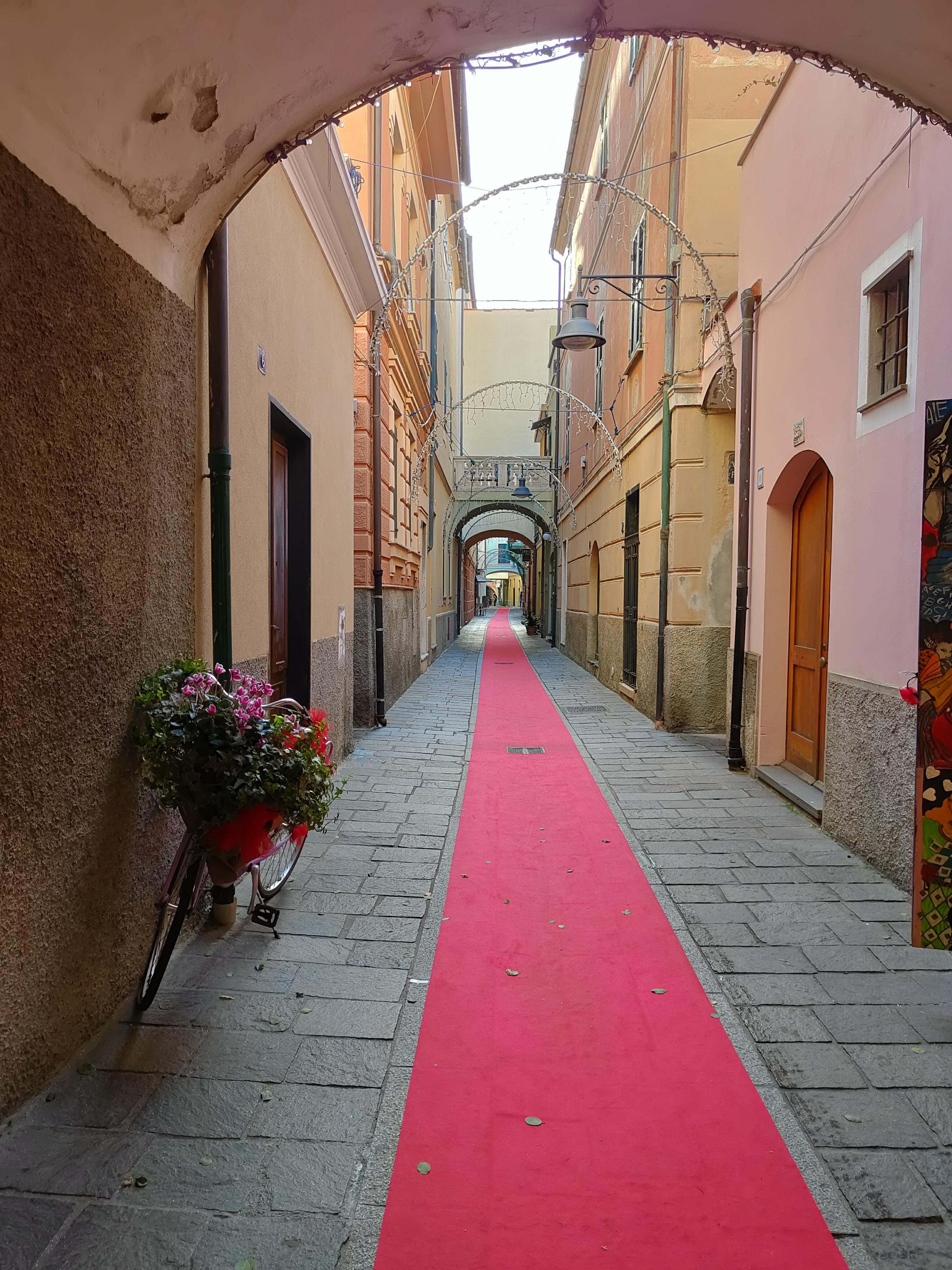 Spotorno è una città curata, pulita, ordinata, tutto sembra essere al posto giusto, c’è persino una bicicletta con un vaso di fiori a dar luce e colore a questo spaccato urbano delle sue vie interne….
