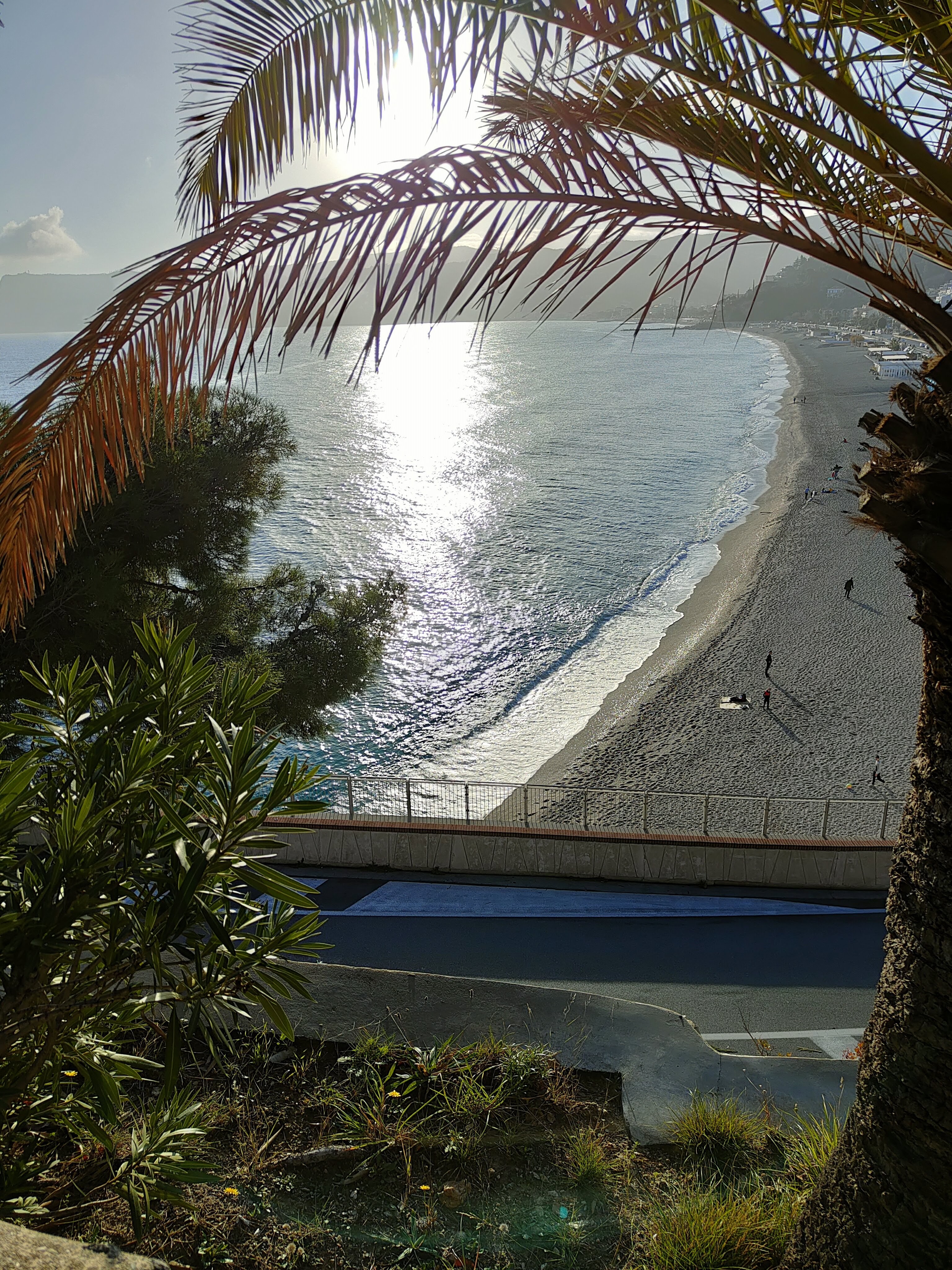 Salendo ecco il panorama che muta, qua possiamo apprezzare per intero il vastissimo spiaggione di Torre del Mare, una delle località più frequentate durante il periodo estivo, nel quale trovare parcheggio da queste parti diventa un’impresa…