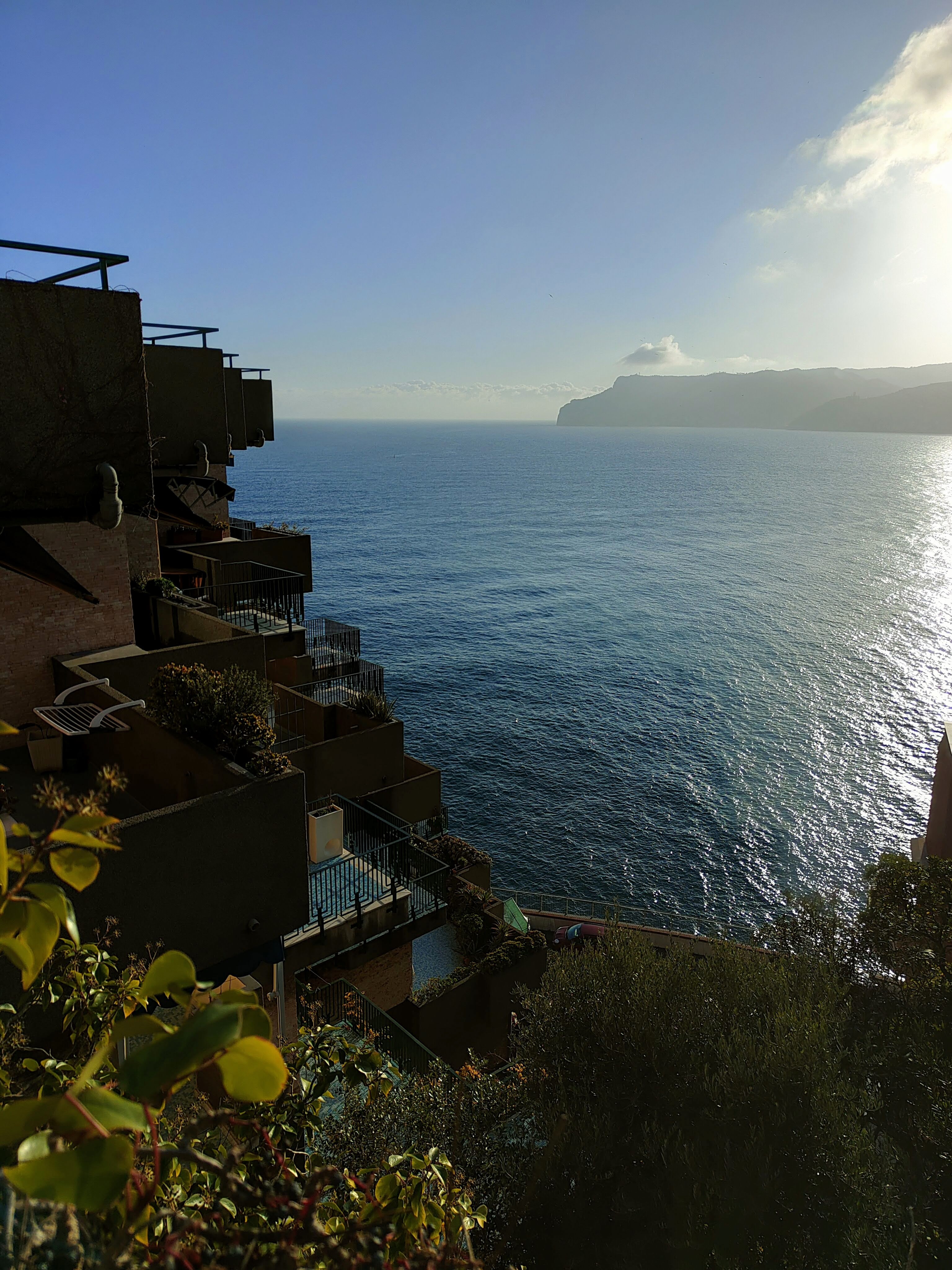 Questa è la vista che hanno la fortuna di avere ogni giorno davanti agli occhi gli abitanti di questi palazzi affacciati sul mare, attraverso la prossima immagine per un attimo anche voi potrete vedervi lì, ad assaporare profumo di salsedine…