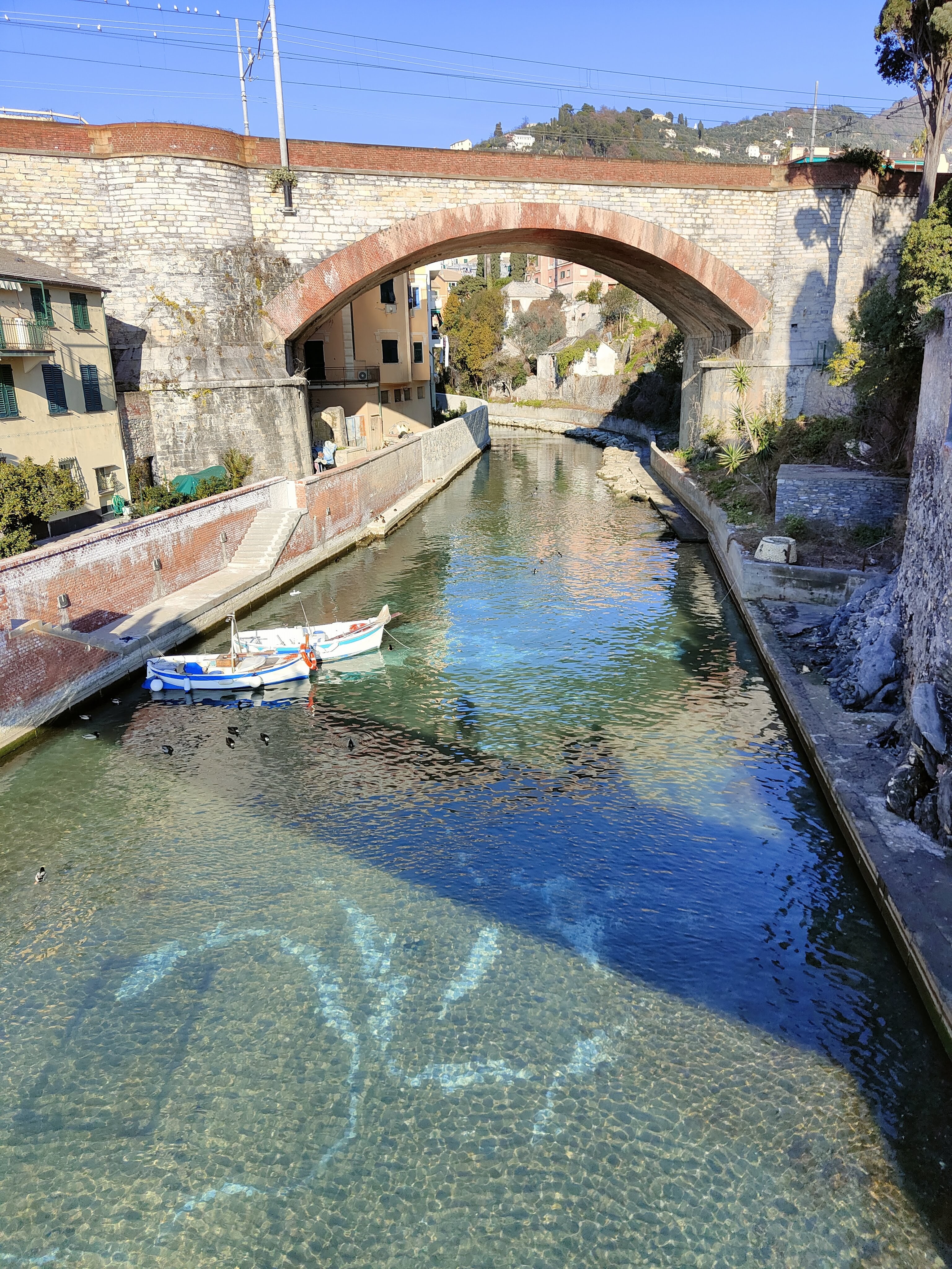 Lasciamo Villa Luxoro e ripassiamo da Nervi, qua siamo nei pressi della foce del piccolo torrente che entra nel porticciolo. Attraverso questo scatto originale iniziamo a vedere un altro angolo di Nervi…..
