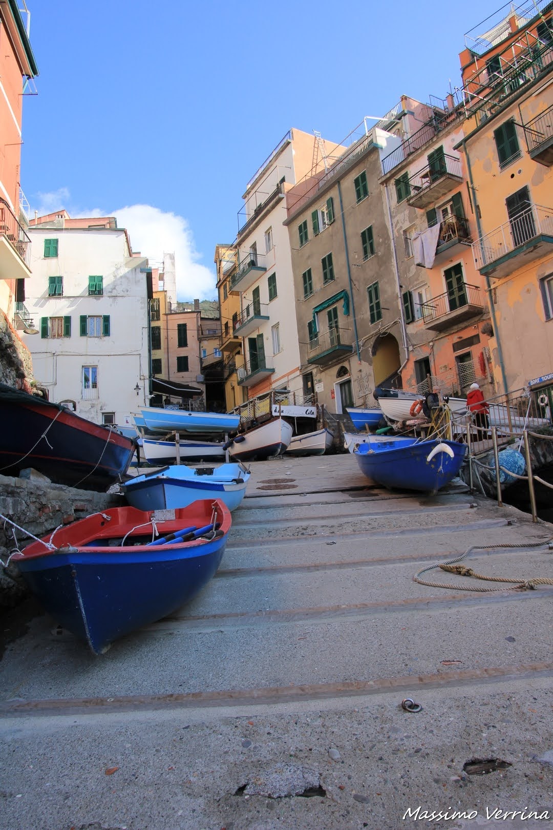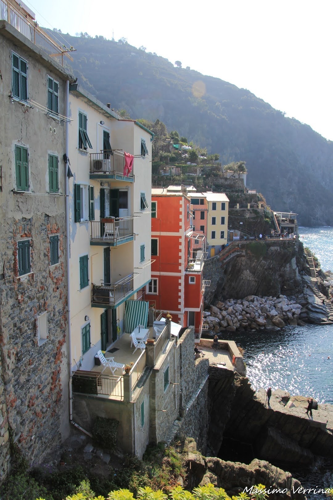 Mi sposto in un altro punto, cambiano le prospettive, qua è la vita degli abitanti a prevalere con quei terrazzi pronti a ricevere il sole, per la fortuna di chi ci vive tutto l’anno, suscitando non poche invidie fra i turisti che passano di lì….