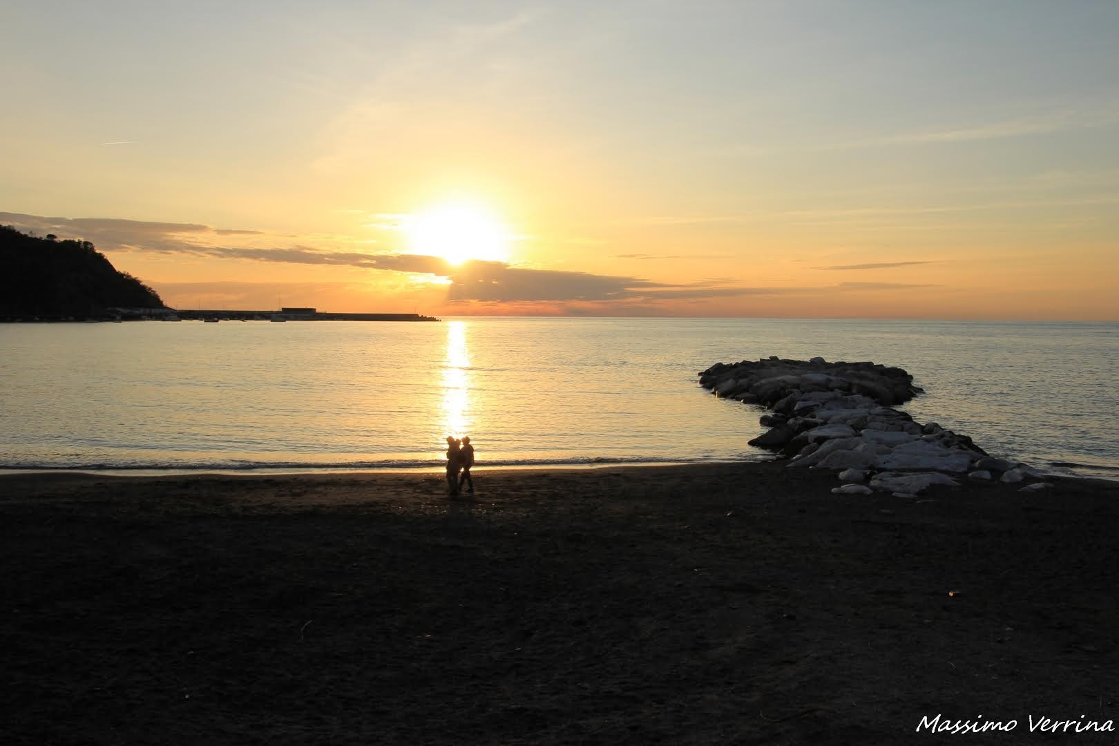 Il paesaggio che si colora dei caldi colori del tramonto… uno spettacolo per gli occhi davvero bellissimo, 🤩. Nella foto in cui ci sono quelle due persone sembra che il raggio di sole abbia creato una “strada di luce” sull’acqua del mare: un effetto ottico molto suggestivo, 👍. E il resto non è da meno: questo tramonto, man mano che avanza, crea delle atmosfere magiche, 😀!