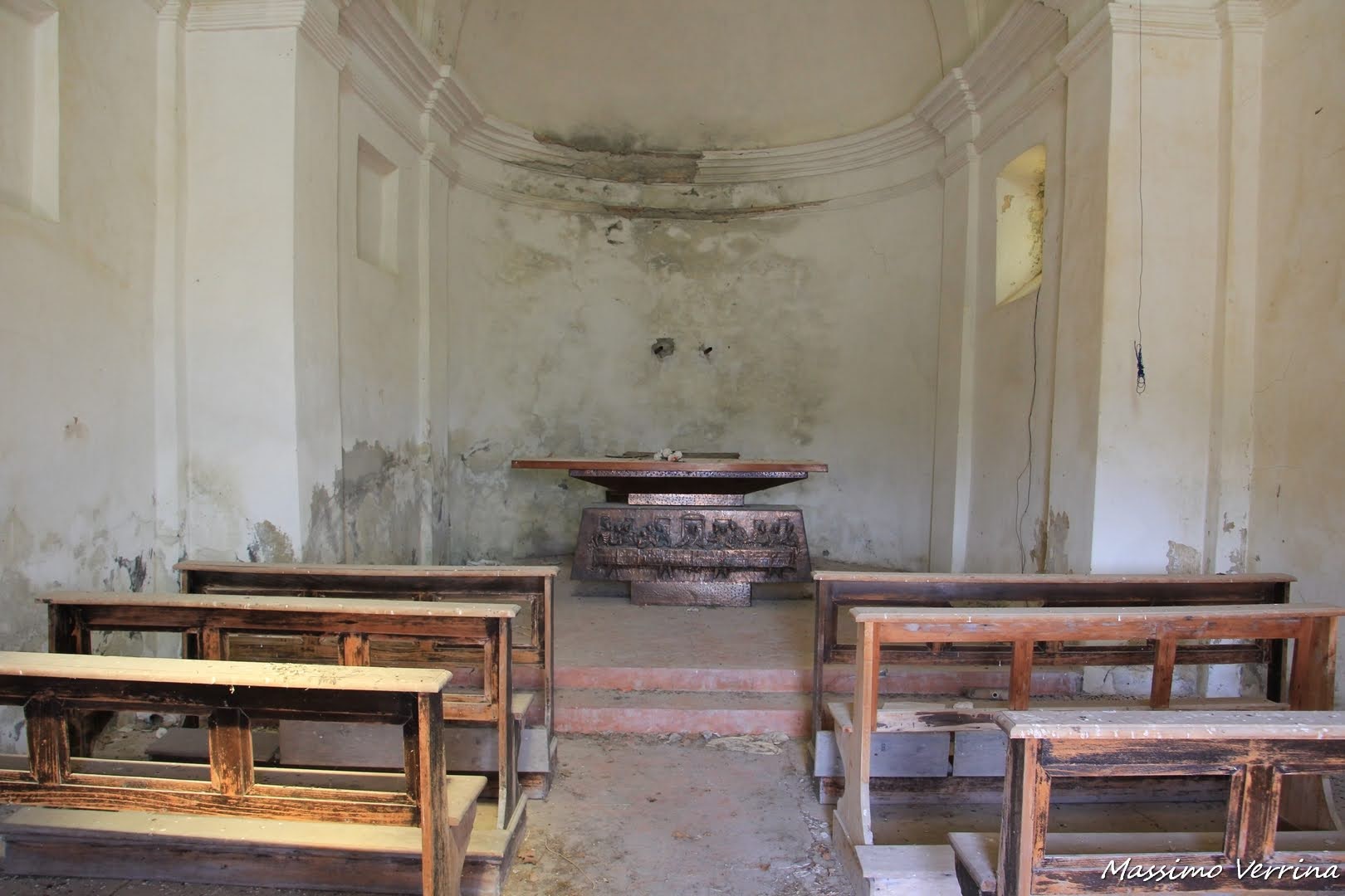 All’interno troviamo ancora ciò che resta delle vecchie panche e dell’altare. Il vento entra tra le inferriate, facendo cigolare la porta d’ingresso. Questo luogo di solitudine e abbandono incuriosisce gli amanti del mistero, coloro che amano scoprire luoghi un tempo vissuti ed ora semplici pagine di storia, ne abbiamo davvero molti nella nostra Italia…