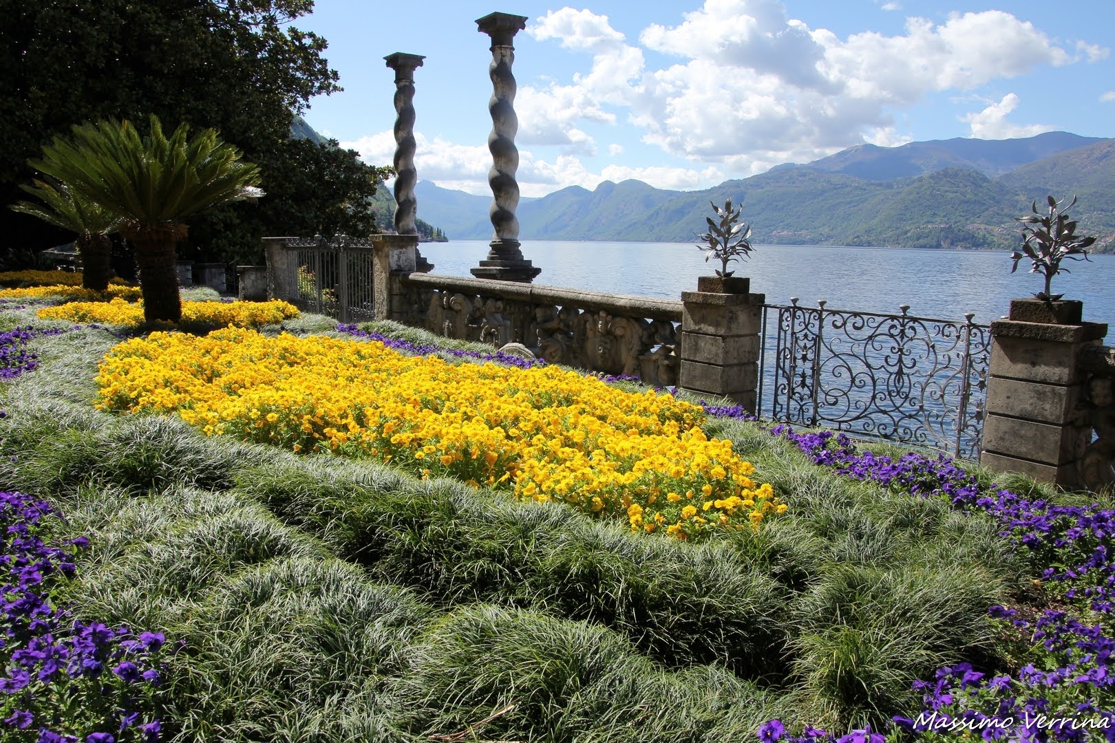Poco più avanti un’altra aiuola fiorita ci delizia con i suoi colori accesi. Il paesaggio qua è armonioso, incantevole, questa villa è un vero gioiello racchiuso sulle sponde del lago di Como…