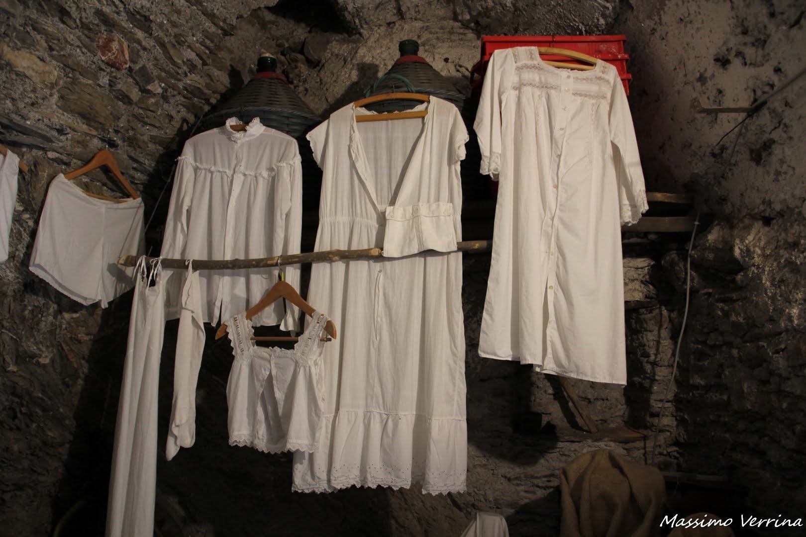 Varcata la soglia una luce si accende, ed ecco che dal buio assoluto si fa strada una nuova pagina di storia. Davanti a me abiti femminili di un tempo lontano sono appesi ad asciugare, simulando un recente lavaggio….