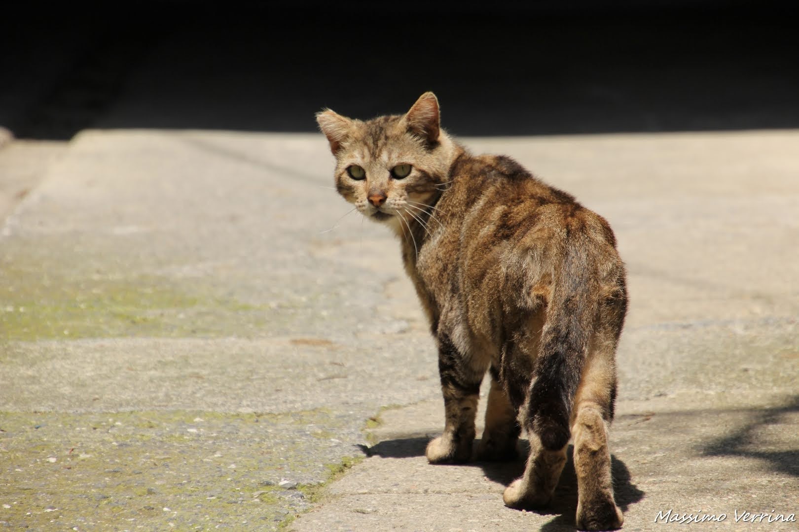 Davanti a me ecco un bel gattino, lo faccio mettere in posa per uno scatto, a differenza di molti altri lui è tranquillo, sembra conoscermi, avverte la mia bontà, la mia pacatezza, è a suo agio anche davanti all’obiettivo….