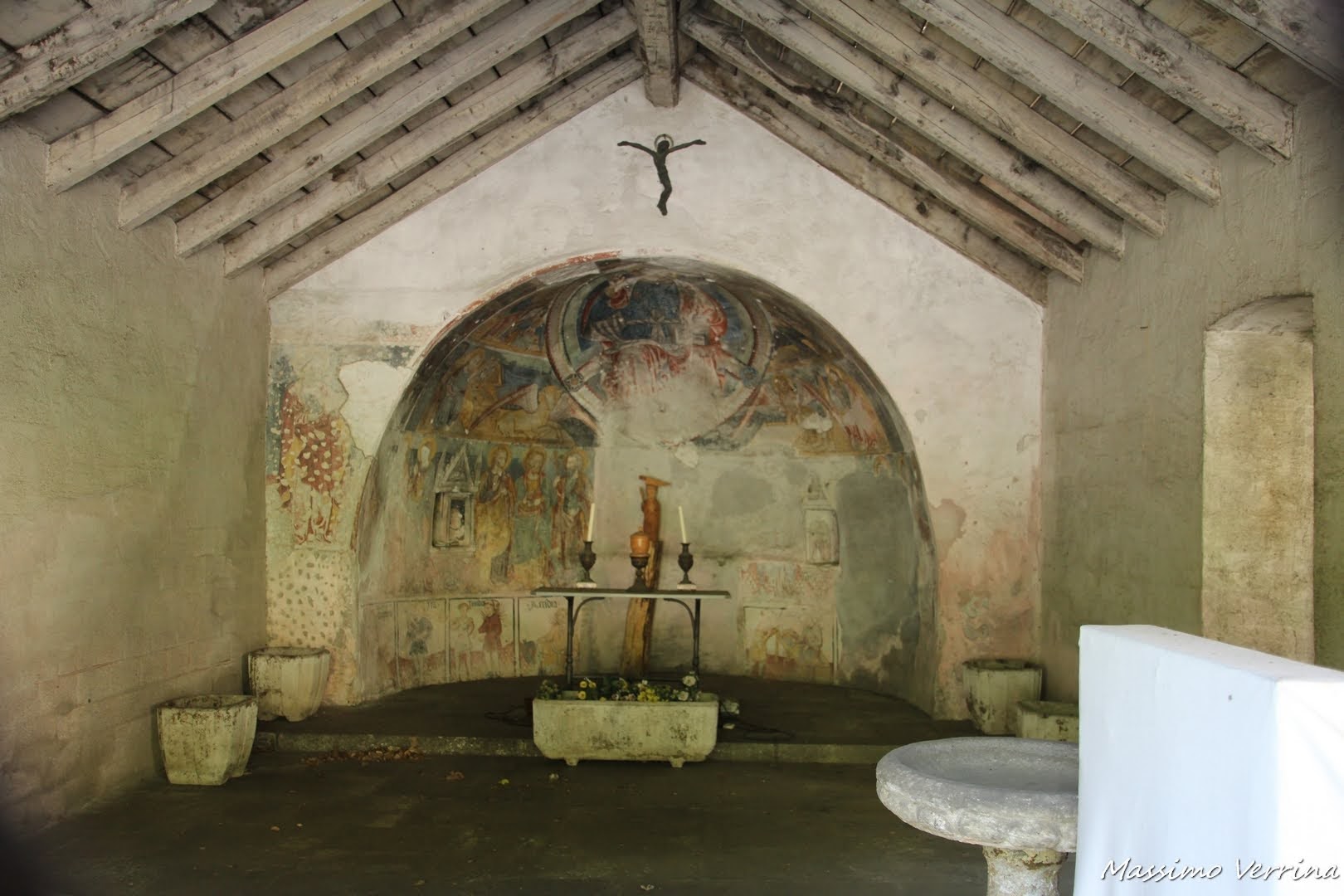 Benvenuti in questa nuova narrazione che vi porterà a scoprire un vero gioiello di arte legata alla fede. Per raggiungerlo lascio la macchina a Varallo, e m’incammino lungo la strada che dapprima costeggia la provinciale, poi diventa sentiero. Ecco lungo questa strada la prima sorpresa, una piccola chiesetta chiusa, semiabbandonata, ma che raccoglie le tracce del suo lontano passato….