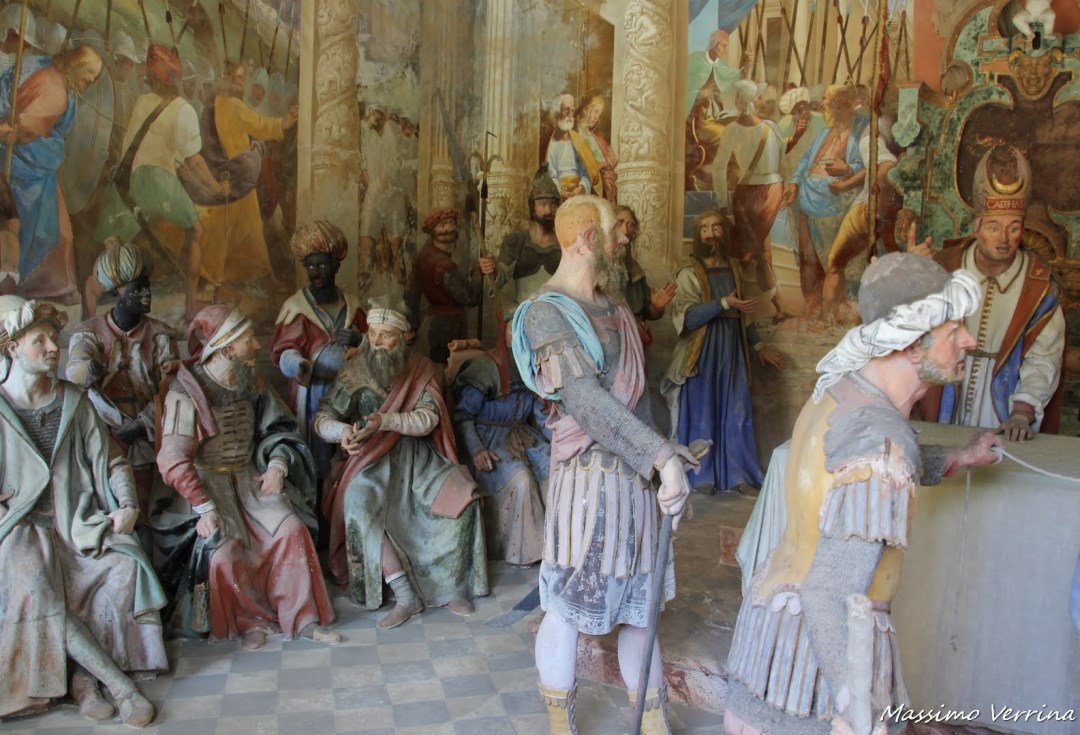 Vi ricordo che le foto multiple potete aprirle singolarmente, e farle scorrere fra di loro in modo da osservarle in grande, vista i moltissimi personaggi e oggetti da ammirare in questi capolavori d’altri tempi. Non vi sto a descrivere le varie scene rappresentate, si percepisce molto bene la sacralità di queste realizzazioni, il dolore, l’orgoglio, l’umiltà, la superbia, di molte statuine qui esposte ad altezza naturale…..