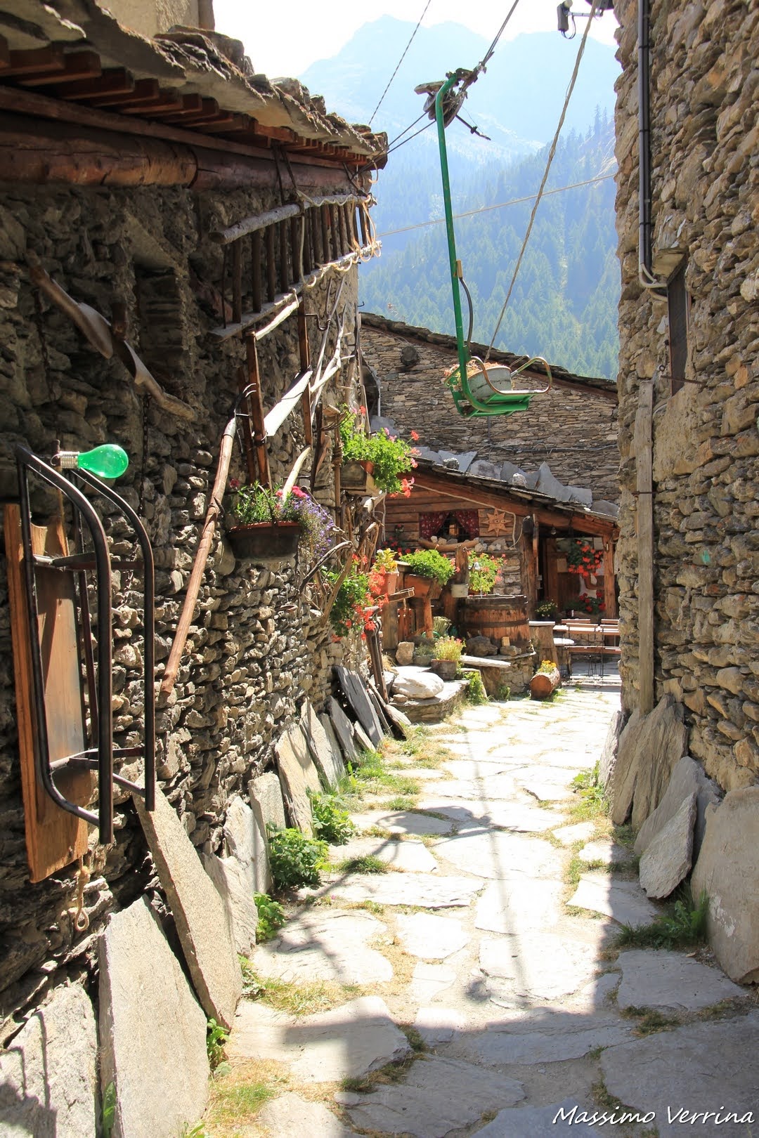 Sono così tanti i lavori esposti che si rimane persino confusi, non si sa neppure da che parte guardare, la meraviglia ci circonda. Fra le tante curiosità di questo angolo di Chianale, c’è anche quel seggiolino della seggiovia, che sta lì, appeso fra le case, a descrivere le molte meraviglie della Valle nella quale ci troviamo, lo vedrete meglio più avanti…