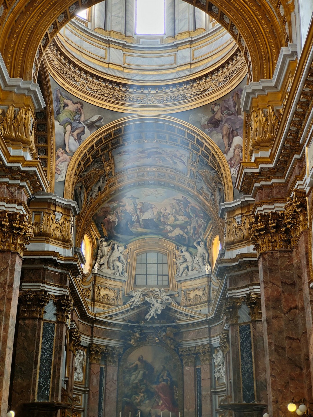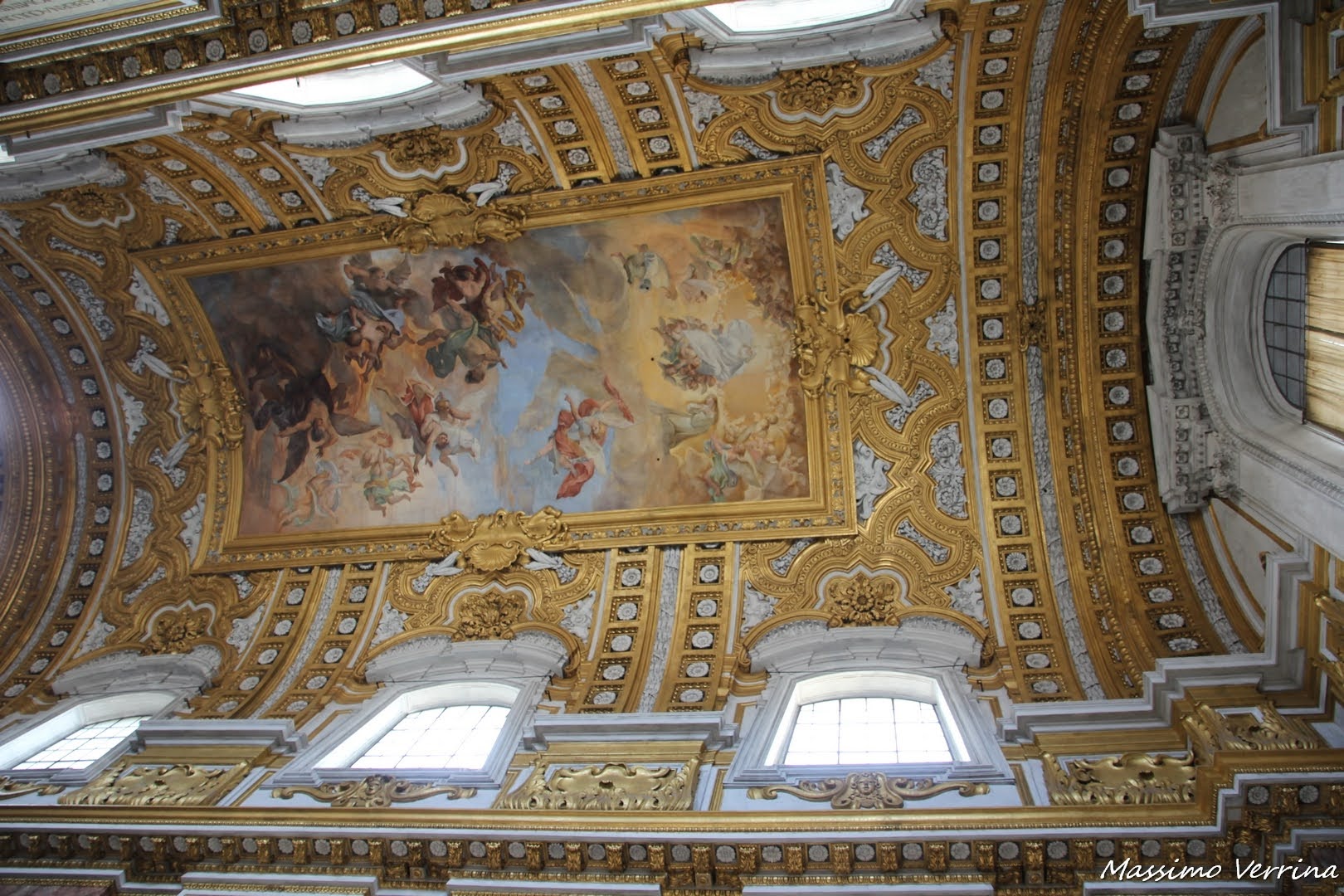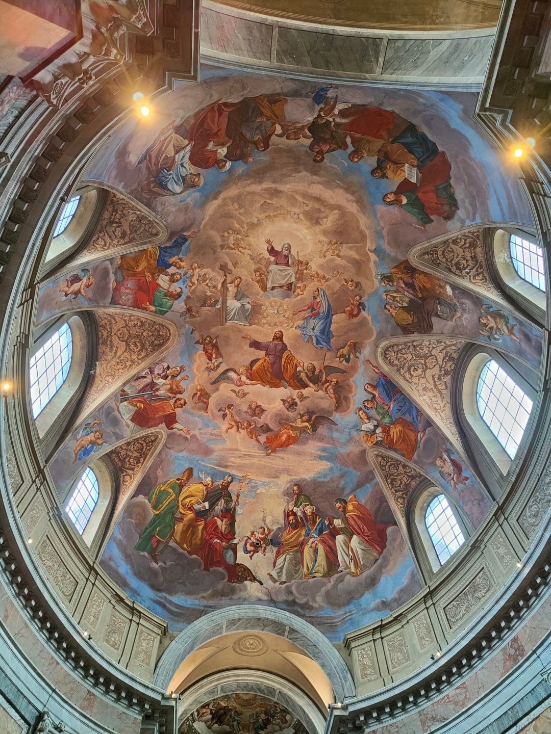 Col teleobiettivo vi porto ad osservare un altro dettaglio spettacolare di un affresco ricchissimo che si trova proprio sopra di noi. Ad occhio nudo tenete presente che non lo vedreste così, quindi da un certo punto di vista si potrebbe dire che attraverso le mie immagini lo vedete meglio che dal vivo…
