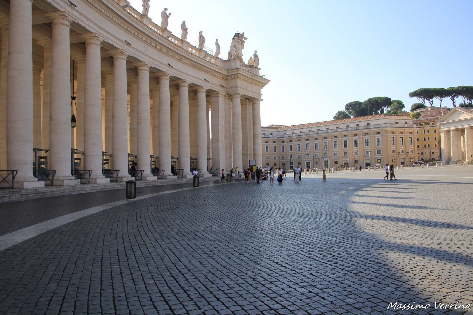 E’ domenica, dopo la meraviglia della notte, eccomi pronto per nuove emozioni, vado a fare colazione in un locale che mi lascia davvero senza parole, di un romanticismo esagerato!! Al soffitto un tappeto di rose rosse e addobbi di ogni genere. Al bancone un mare di dolcezza, come inizio di giornata è stato davvero il top!! Proseguo verso San Pietro, c’è già coda per entrare nonostante fossimo di prima mattina, una volta varcato l’ingresso mi perdo ad osservare l’immenso colonnato che cinge la piazza….