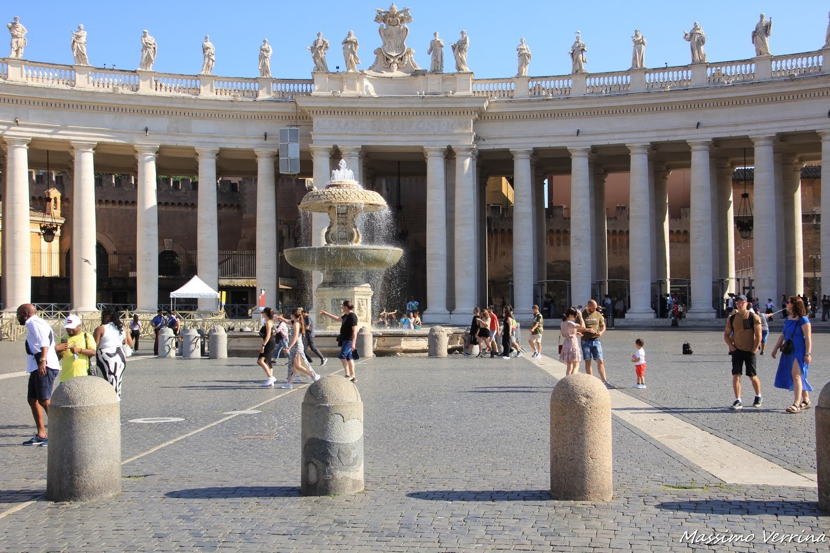 Prima di entrare dentro alla magnifica Basilica di San Pietro passeggio nell’immensa piazza, approfittando della poca gente del mattino per vederla al meglio, lo scenario che si apriva dinanzi ai miei occhi era a dir poco grandioso!!