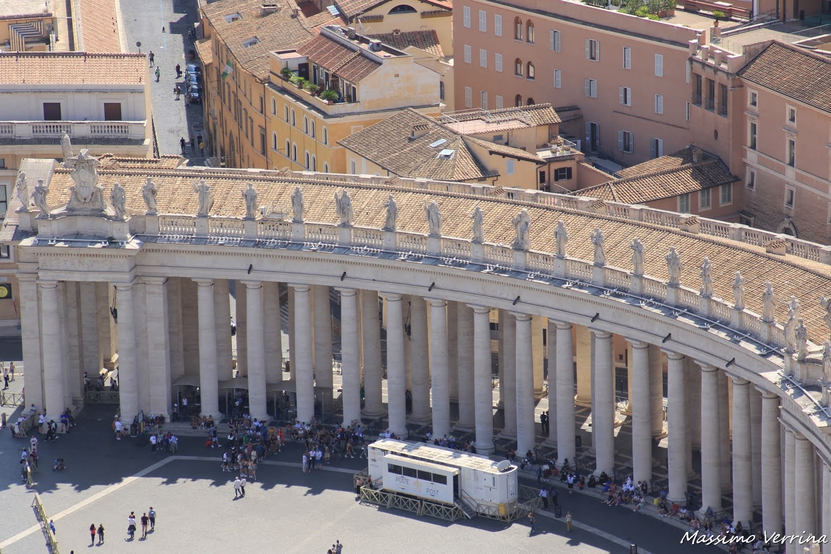 Vorrei farvi notare anche la meraviglia del colonnato che circonda Piazza San Pietro, visto da quassù, con tutte quelle statue disposte in circolo è davvero meraviglioso…