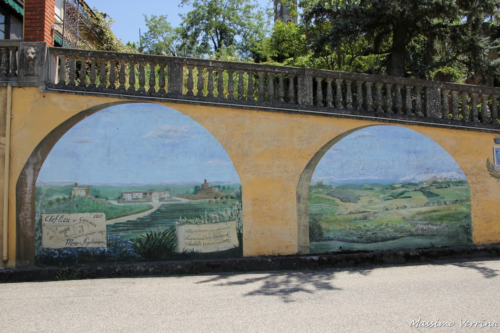 Col post di oggi ci siamo trasferiti in un altro borgo, qui siamo a Cuccaro Monferrato, la cosa che mi ha colpito subito camminando per la strada principale è stato questo bellissimo murales che ci offre una visione stupenda delle colline e dei borghi nei quali ci troviamo..