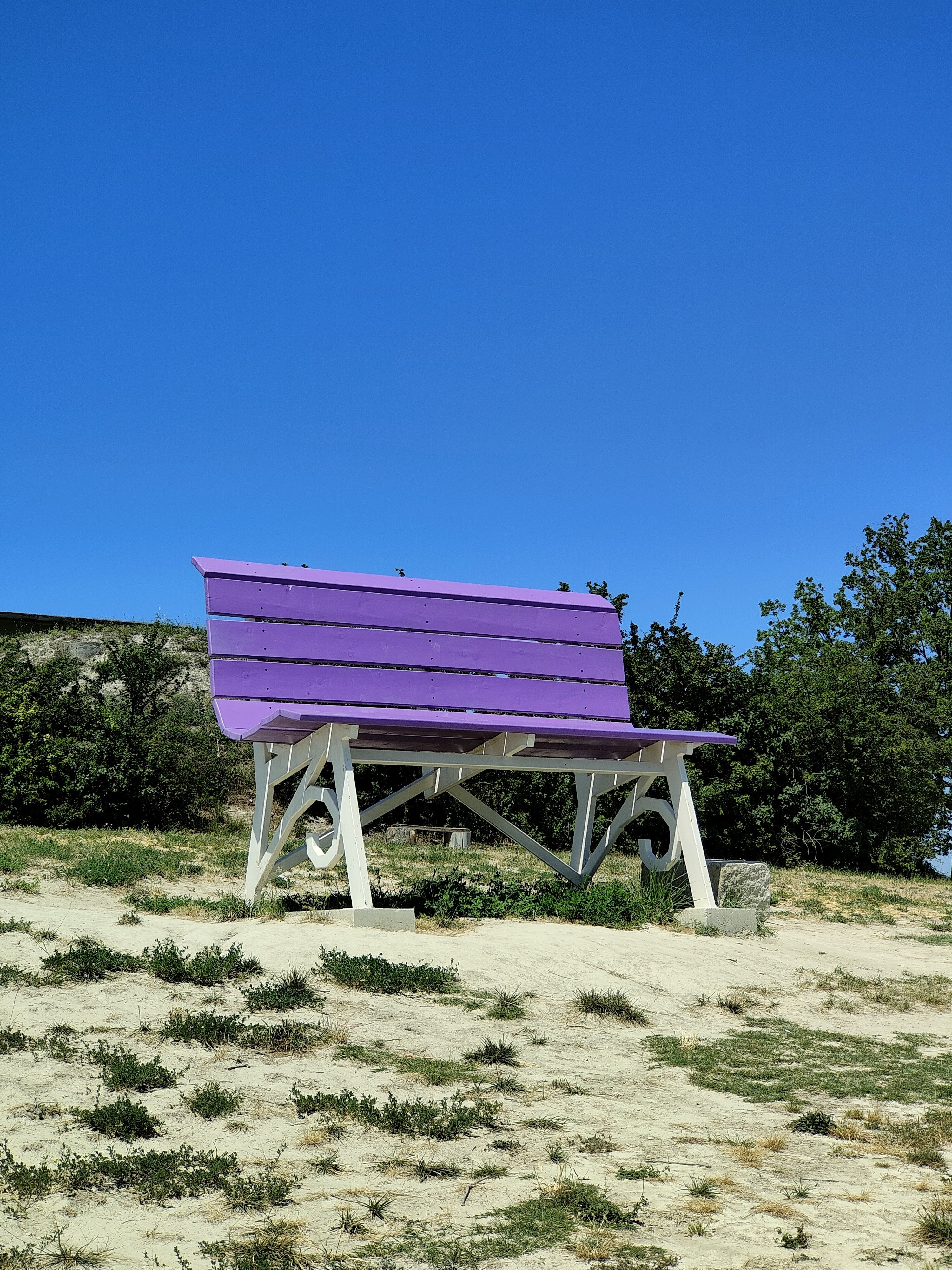 Tantissimi anni fa sono stata in montagna e ho ammirato quel tipo di panchine, ma la panchina viola mi è piaciuta tantissimo.