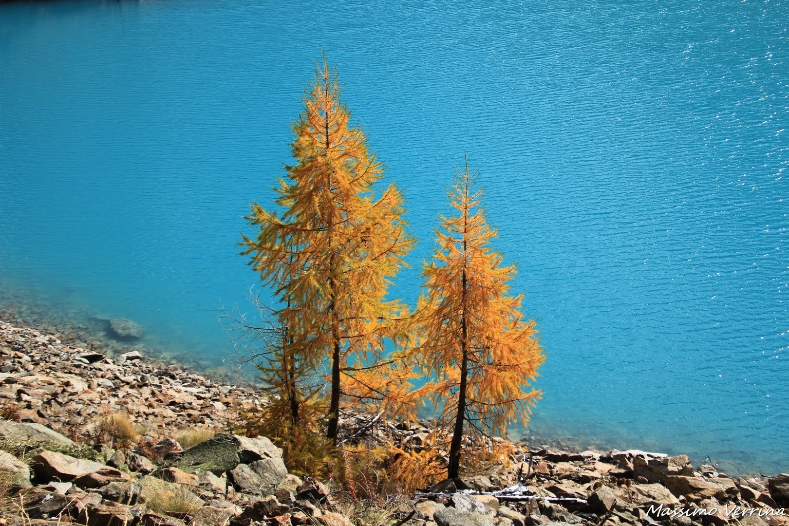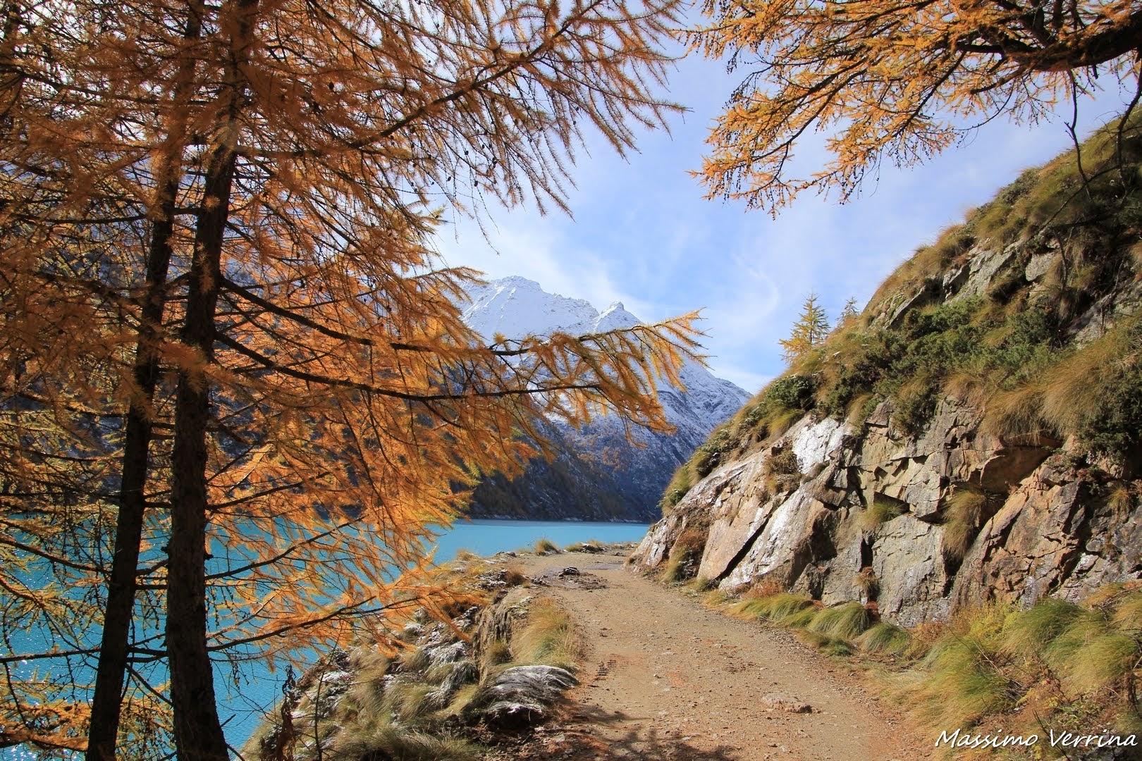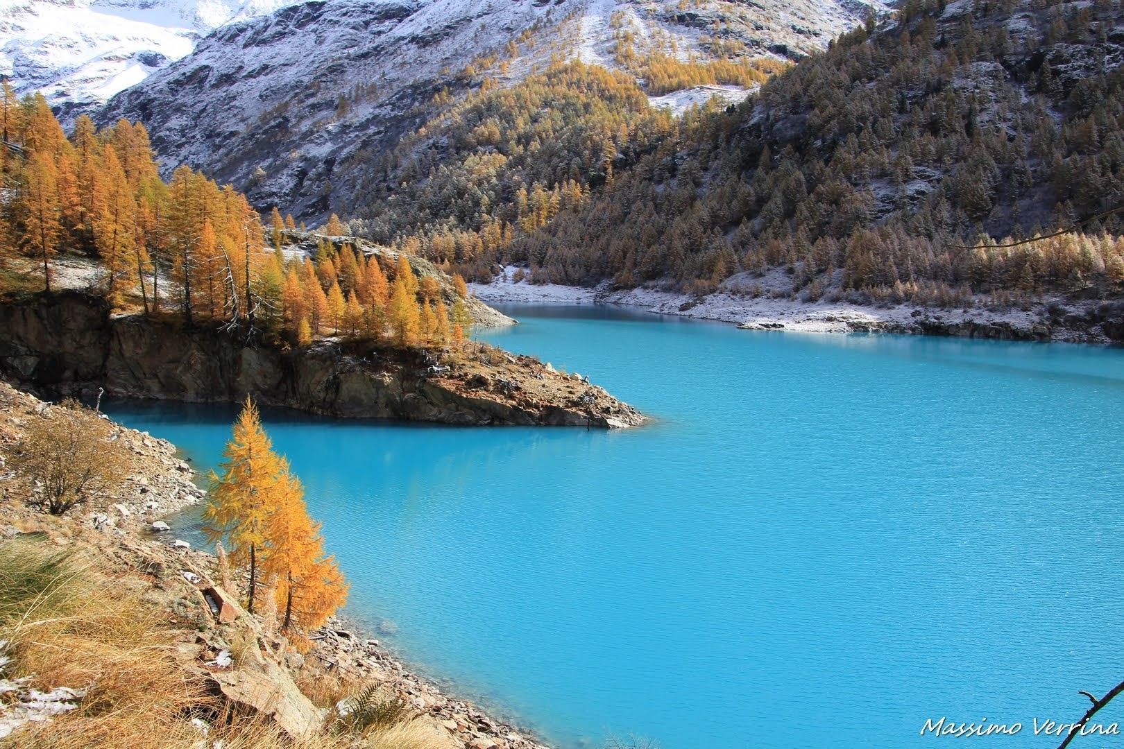 beh insomma una foto piu belka dell altra..ma le mie preferite sono: l ultima con quel borotalco sul sentiero. e quegli alberi in rarefazione sullo sfondo e quella con quei due larici dorati sul fondo turchese del lago questa è quella che preferisco..non so forse i colori e forse la solitudine e la profondità di quel colore.. grazie Max!!! cose meravigliose!