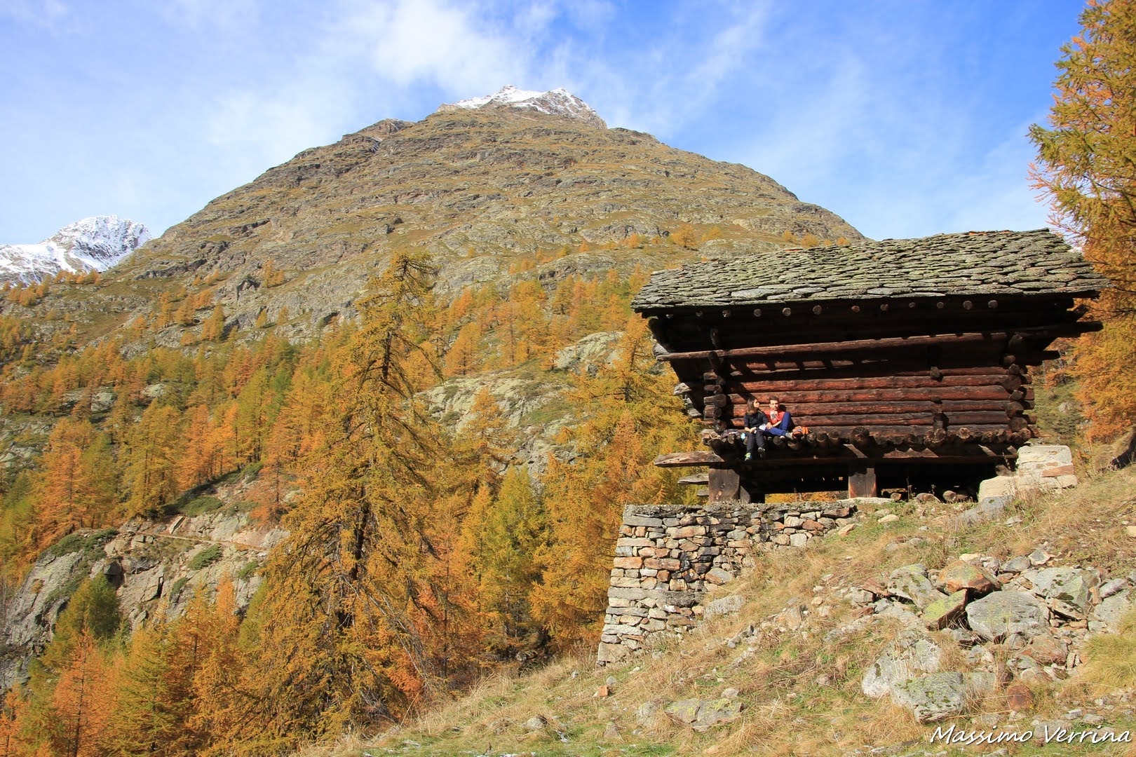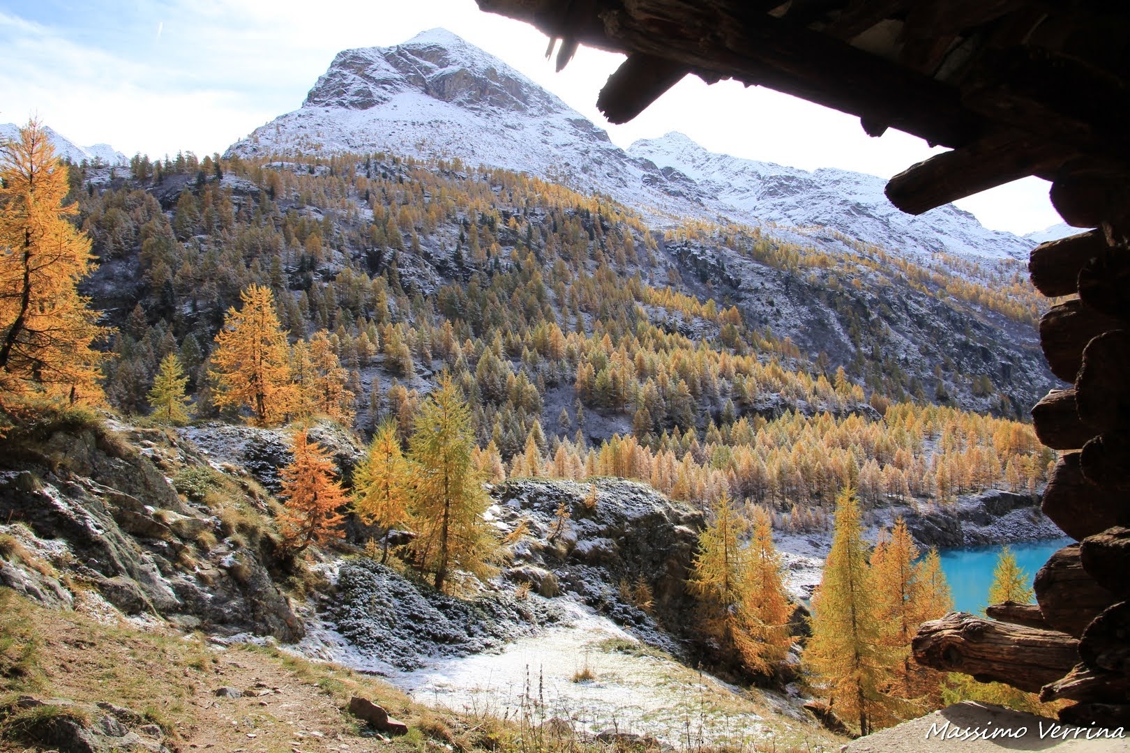 Un’altra bella prospettiva da quel punto è stata cogliere la montagna con la neve sull’altro versante, ed inserire tutta la montagna e il suo gioco di colori fra la cornice di legno del profilo della casetta, per un altro dei miei scatti dove la ricerca fotografica si sposa con la bellezza in se stessa…