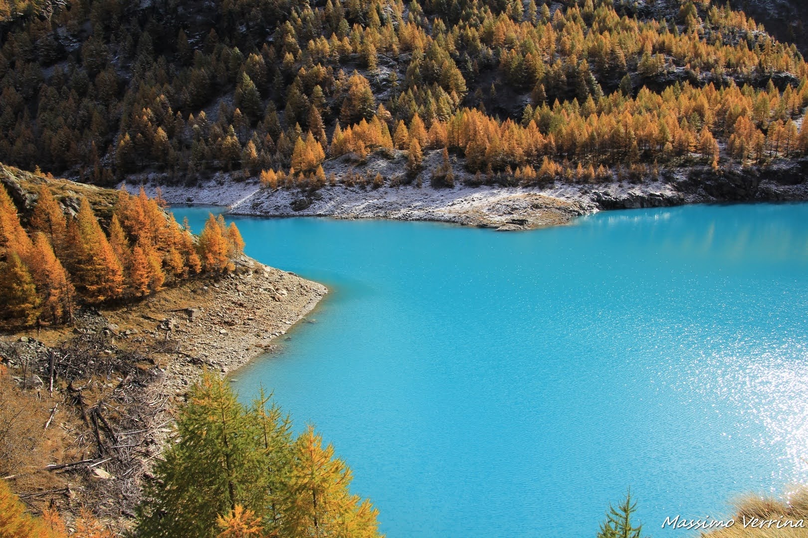 Cambiava la luce, l’inclinazione del sole faceva apparire ancora più intensa la colorazione del lago, lo spettacolo che avevo davanti agli occhi era davvero incredibile….