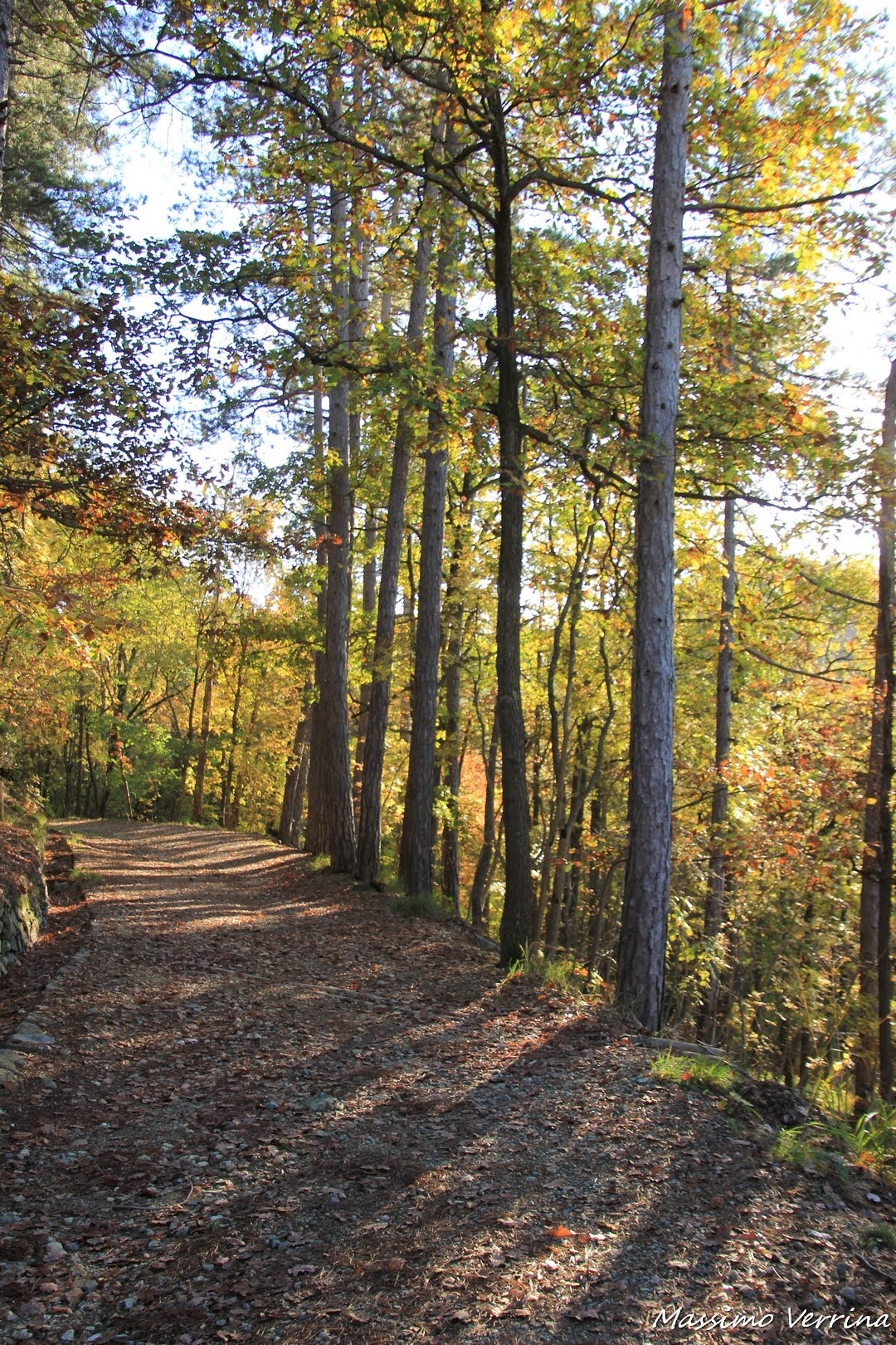 le chiome degli alberi con i loro colori autunnali donano un senso di luce naturale a tutto il sentiero…