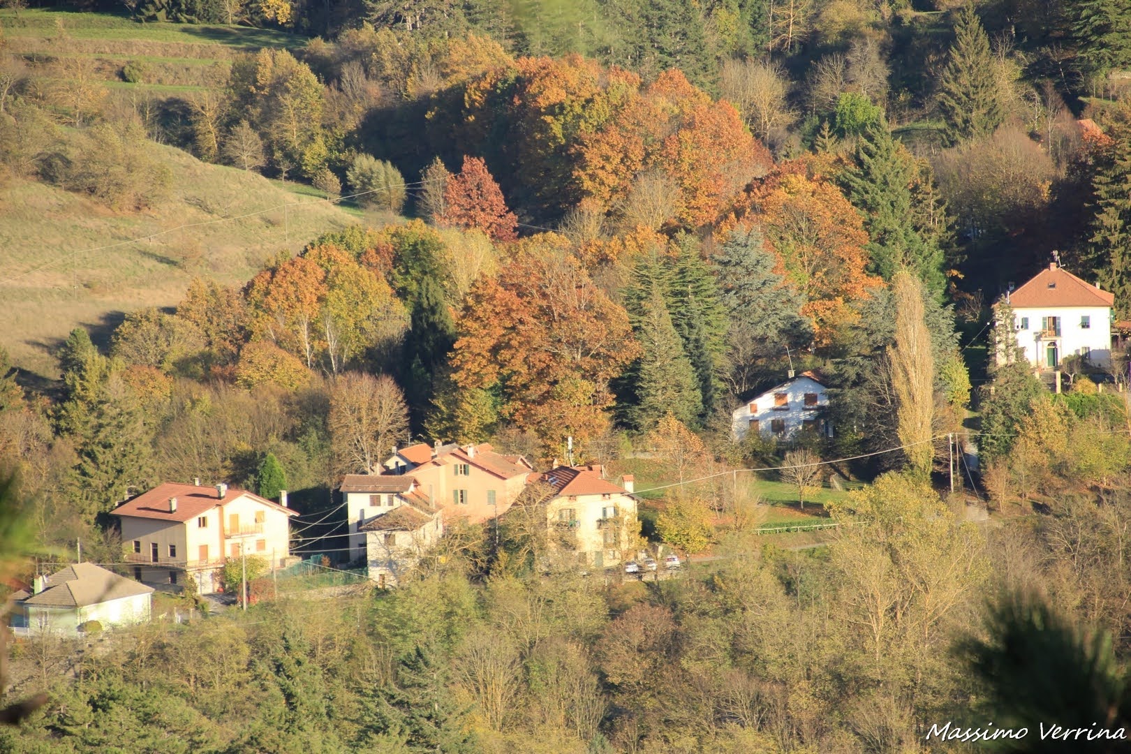Più in basso troviamo piccoli gruppi di case semi nascoste fra la vegetazione e il bellissimo colore del foliage tutto attorno. Qui la vita scorre tranquilla, il caos delle metropoli appare distante…..