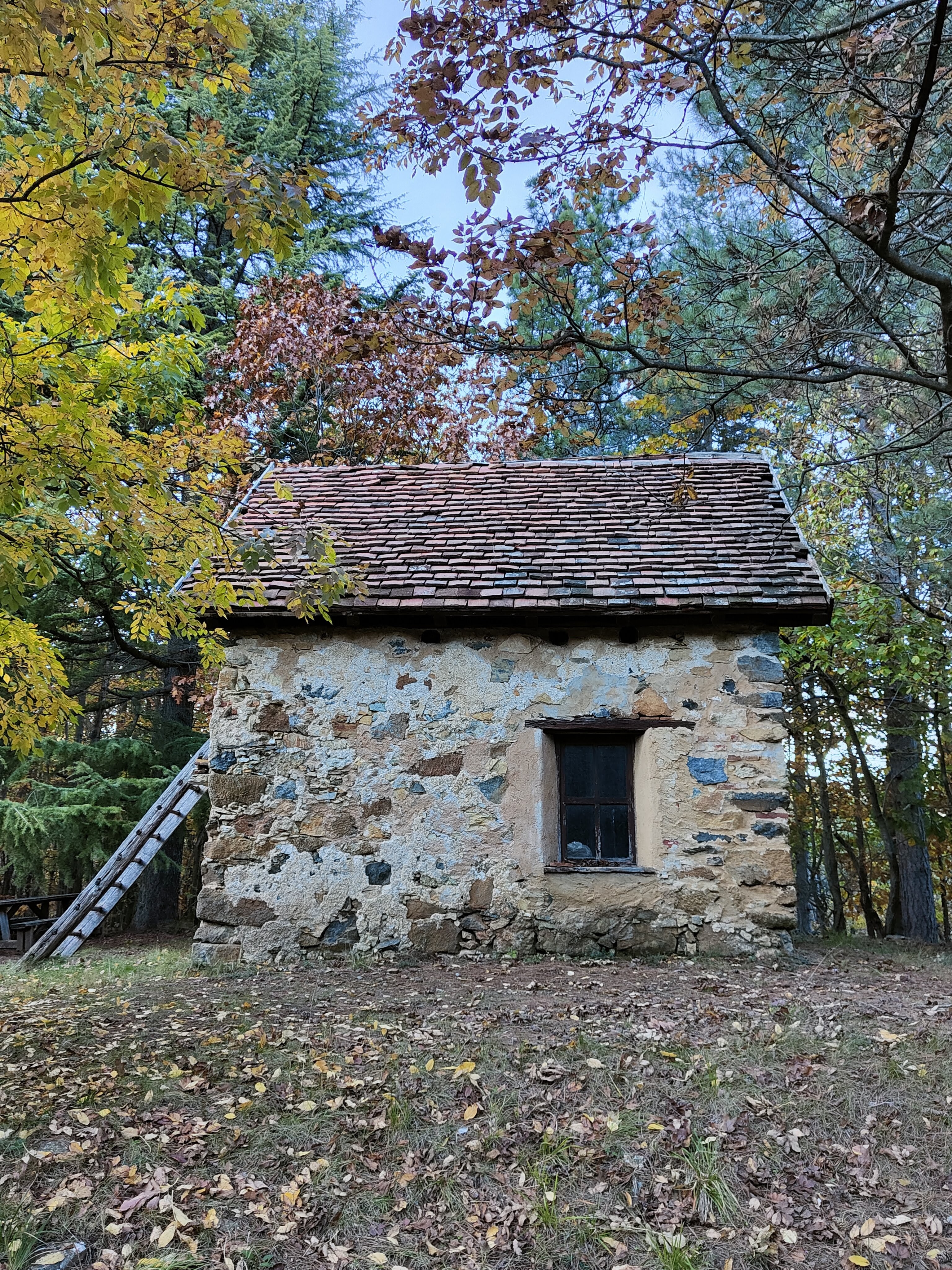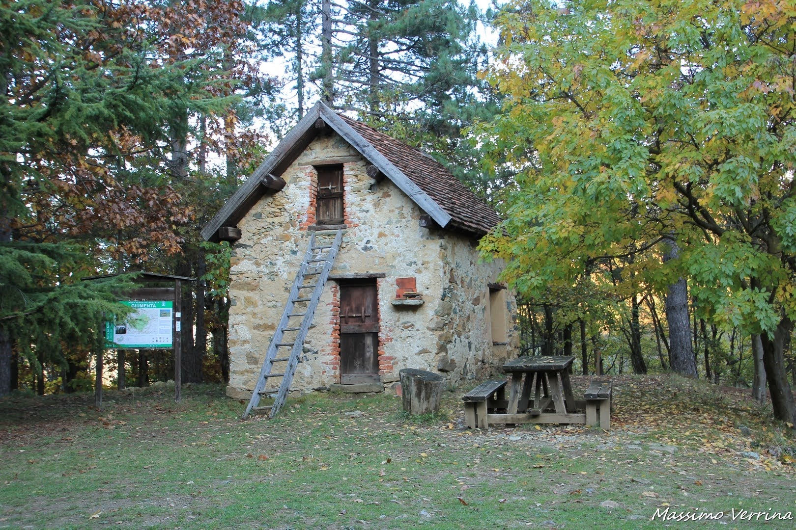 Dopo essere stato immerso nella fitta foresta, ecco una grande radura, come vedete c’è una piccola casetta in pietra di una bellezza unica, che vedremo a breve, e un casone più grosso subito dopo. Qui nel periodo estivo è aperto un Rifugio dove si può anche pernottare. Nel periodo autunnale tutto è deserto, silente e muto, ma l’incanto del luogo rimane inalterato, anzi se possibile acquista una bellezza ancora maggiore per via del foliage…
