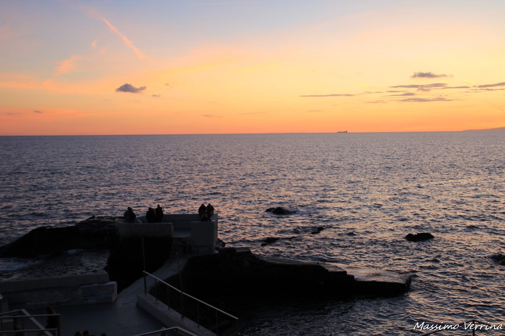 Scendo in una minuscola baia, le onde mi arrivano fino ai piedi, due amanti poco distanti non si accorgono della mia presenza, e sembrano scomparire fra le ultime luci del giorno. Osservo l’orizzonte e scrivo poesia…