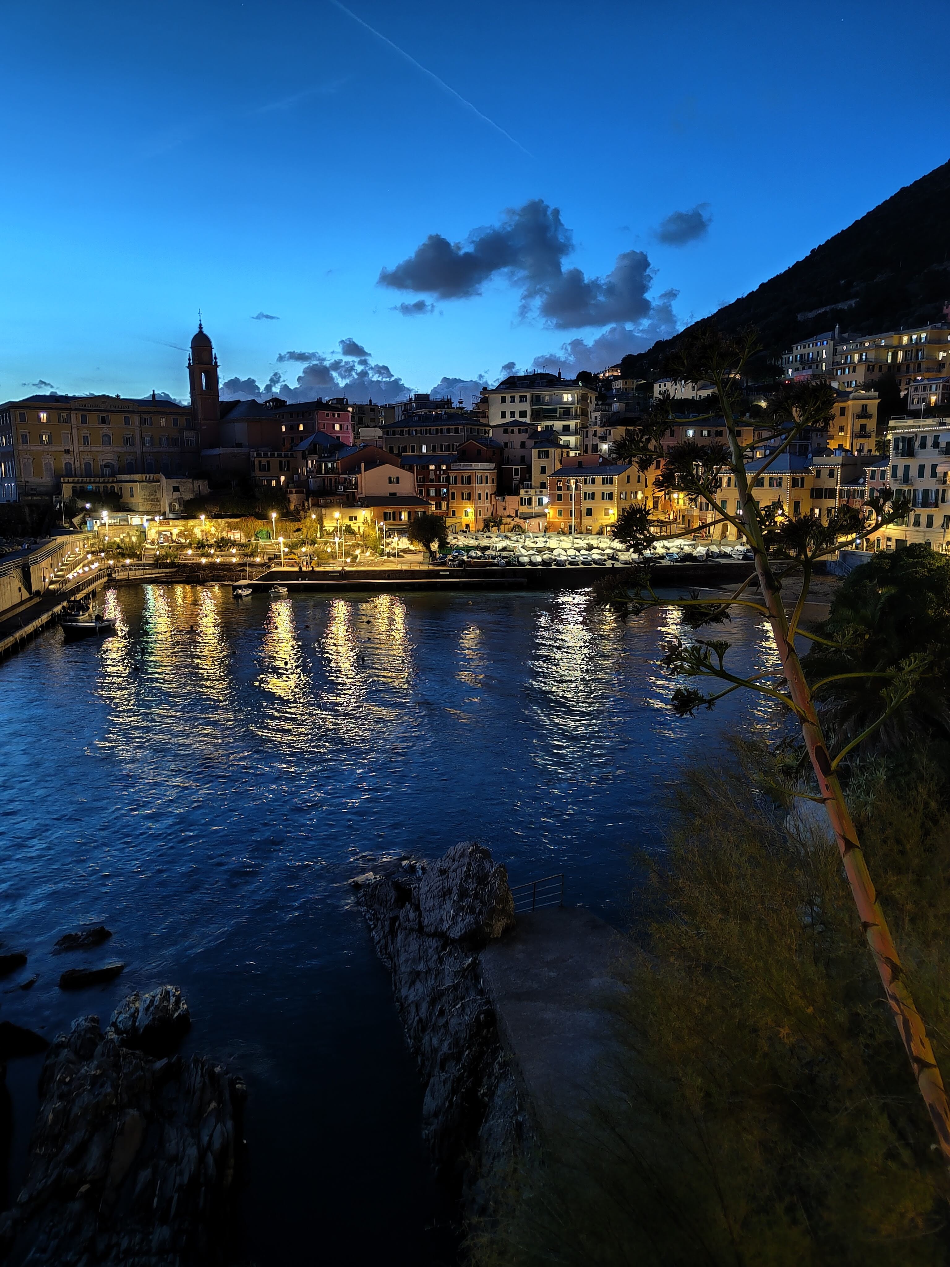L’ora blu sta per lasciare spazio alla notte, le luci ora sono le protagoniste del paesaggio, lo stesso porticciolo, con le sue case colorate che avete visto nelle luci del pomeriggio, ora ci appare come un Presepe mentre cambia scenario e si avvia alla notte. Tutto diventa magico, nuove emozioni assorbono le poesie dei nostri cuori…