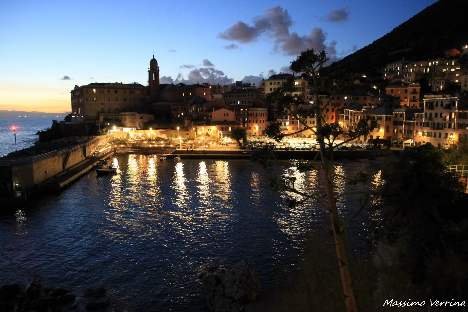 Osservo le luci che si riflettono sul mare, le sagome scure delle case e le ultime luci che sembrano occhieggiare dal lontano orizzonte, mentre i minuti scorrono veloci trasportando con se tutti i ricordi del giorno…
