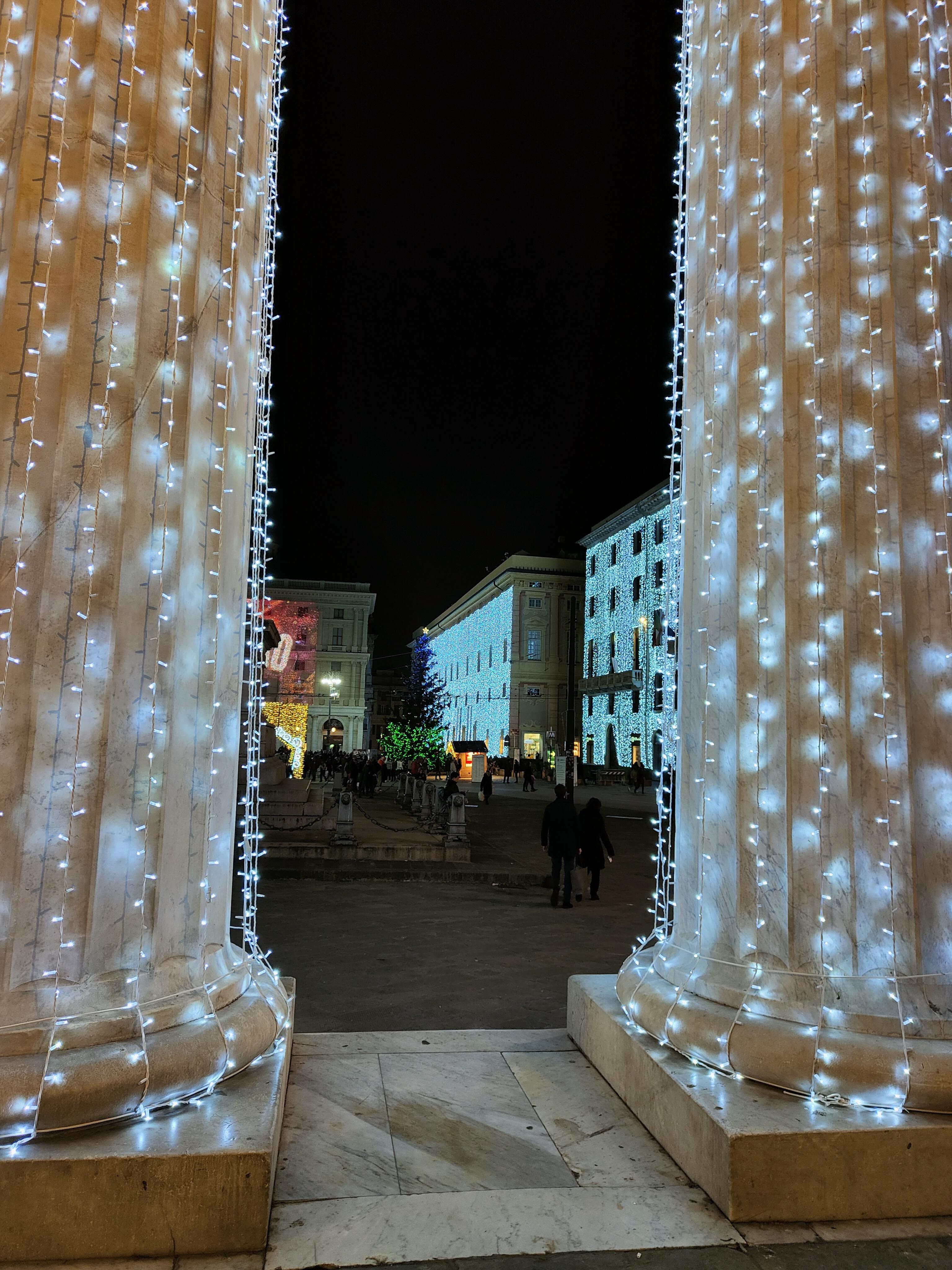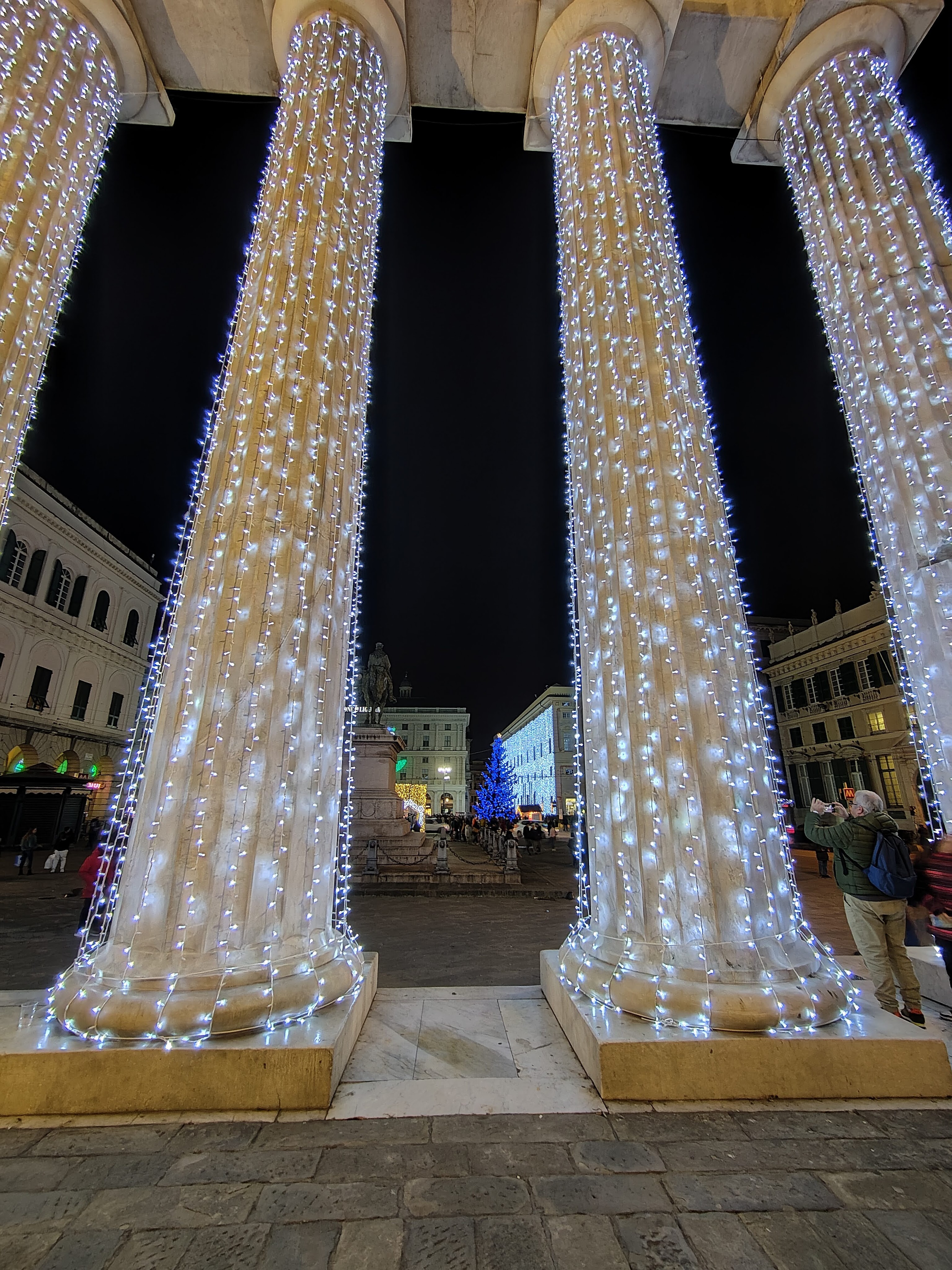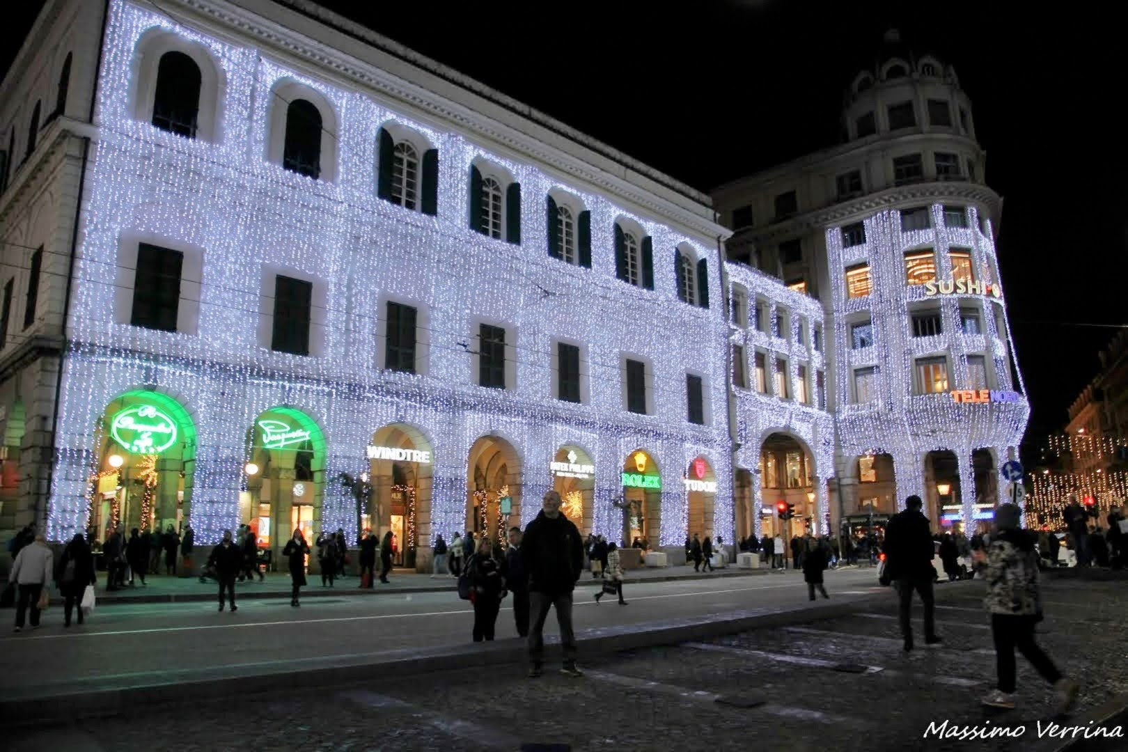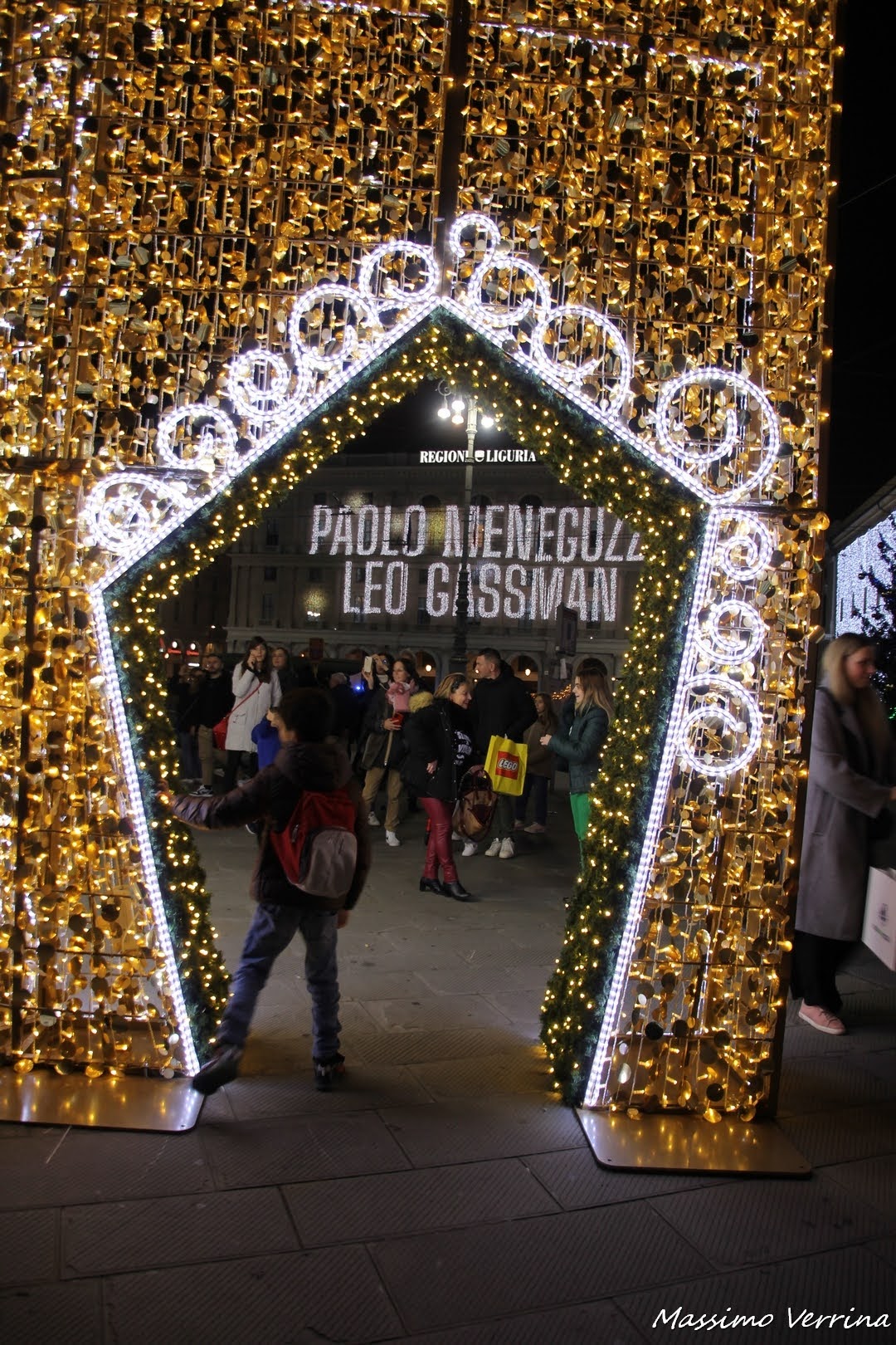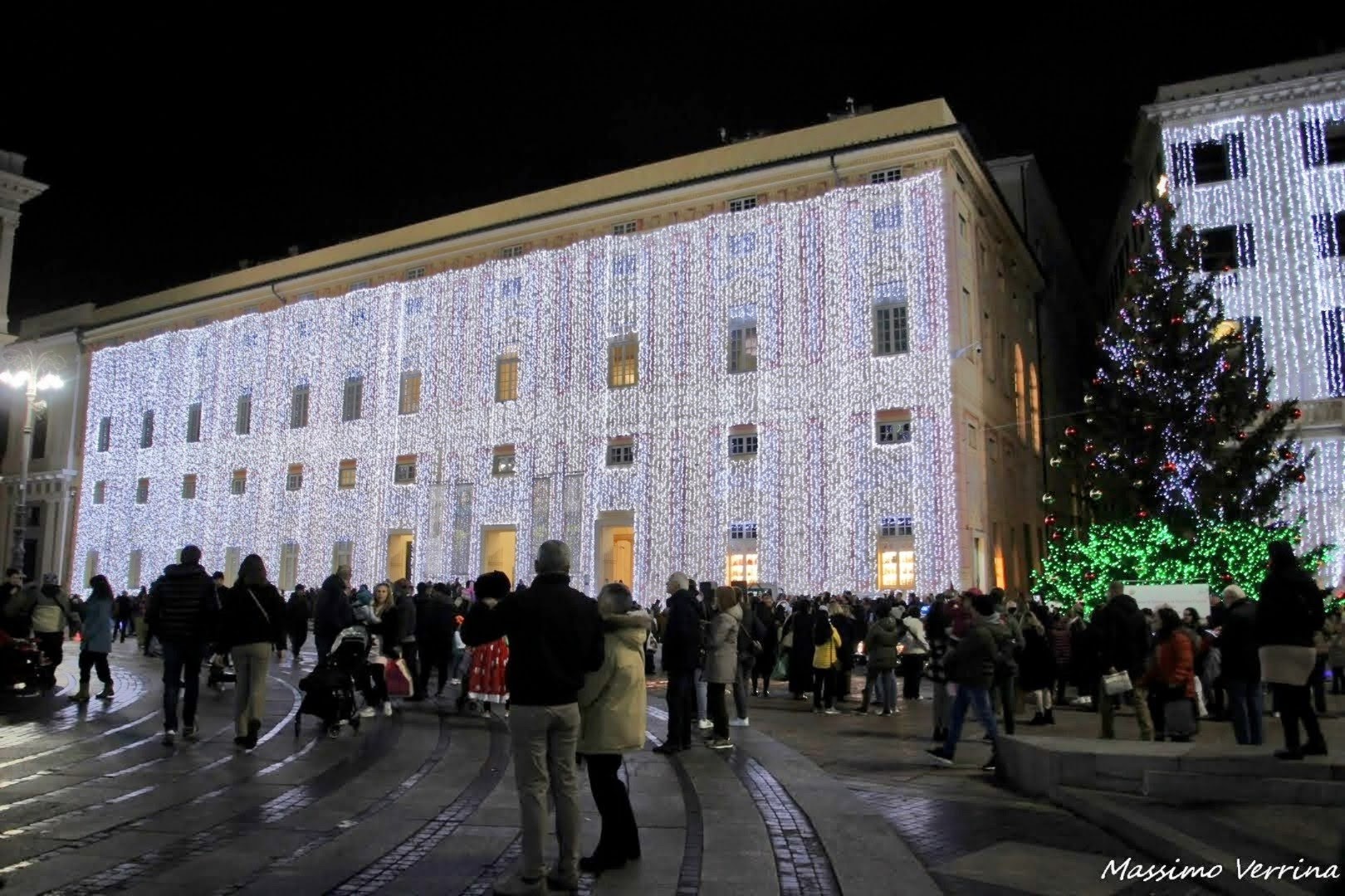 Tutto attorno a Piazza de Ferrari i palazzi sono avvolti di luci, decine di migliaia di led creano una scenografia meravigliosa che lascai davvero senza parole…