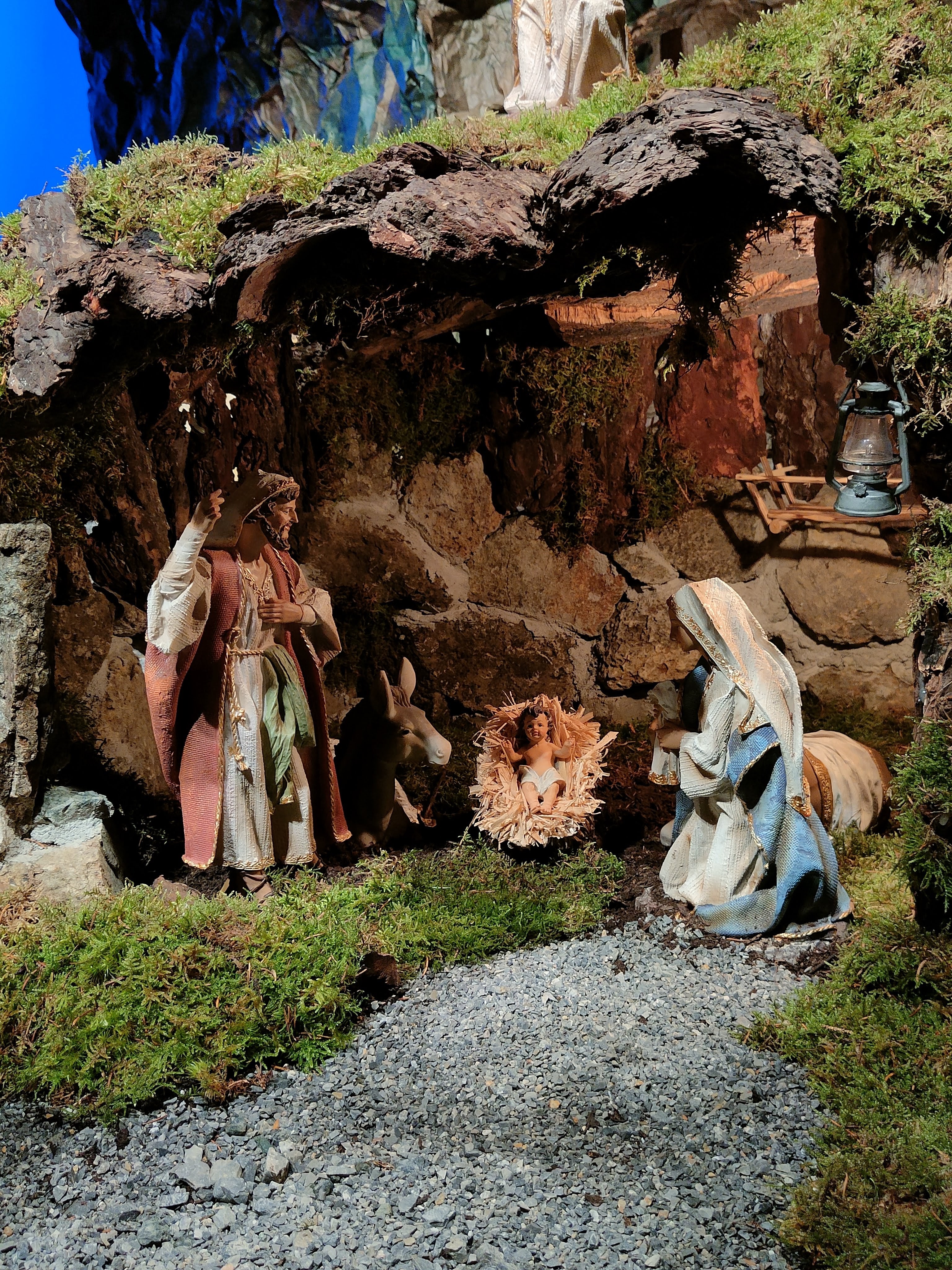 In questo presepe la grotta della Natività è rappresentata con una dolcezza unica, le due statuine poste ai lati non coprono il bambinello, che appare trionfare nell’innocenza della vita, trasmettendo un amorevole abbraccio a chi passa da lì..