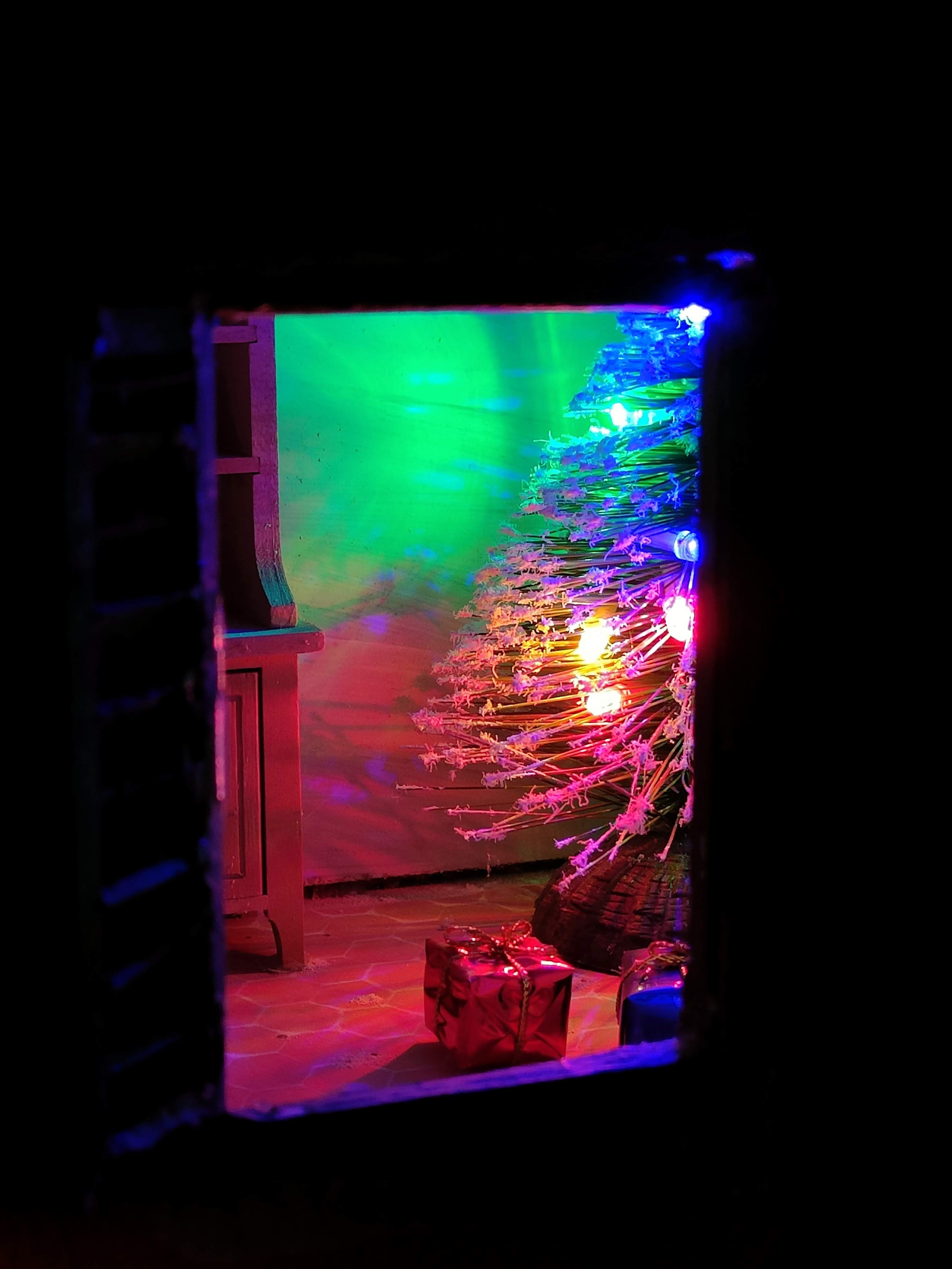Le luci dell’albero colorate illuminano l’interno della casa, guardate l’effetto dei colori sui mobili, e anche la bellezza degli stessi, dove ogni particolare appare semplicemente perfetto….