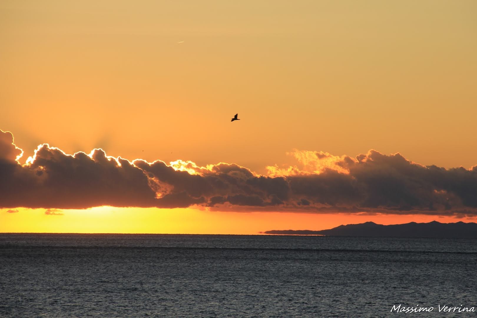 Raffiche di tramontana giunsero improvvise, un gabbiano tagliava il vento librandosi nelle correnti, all’orizzonte l’aria secca produceva effetti davvero particolari al paesaggio, tanto che nubi e costa erano fuse in una linea unica, che sembrava poi sollevarsi verso il mare…