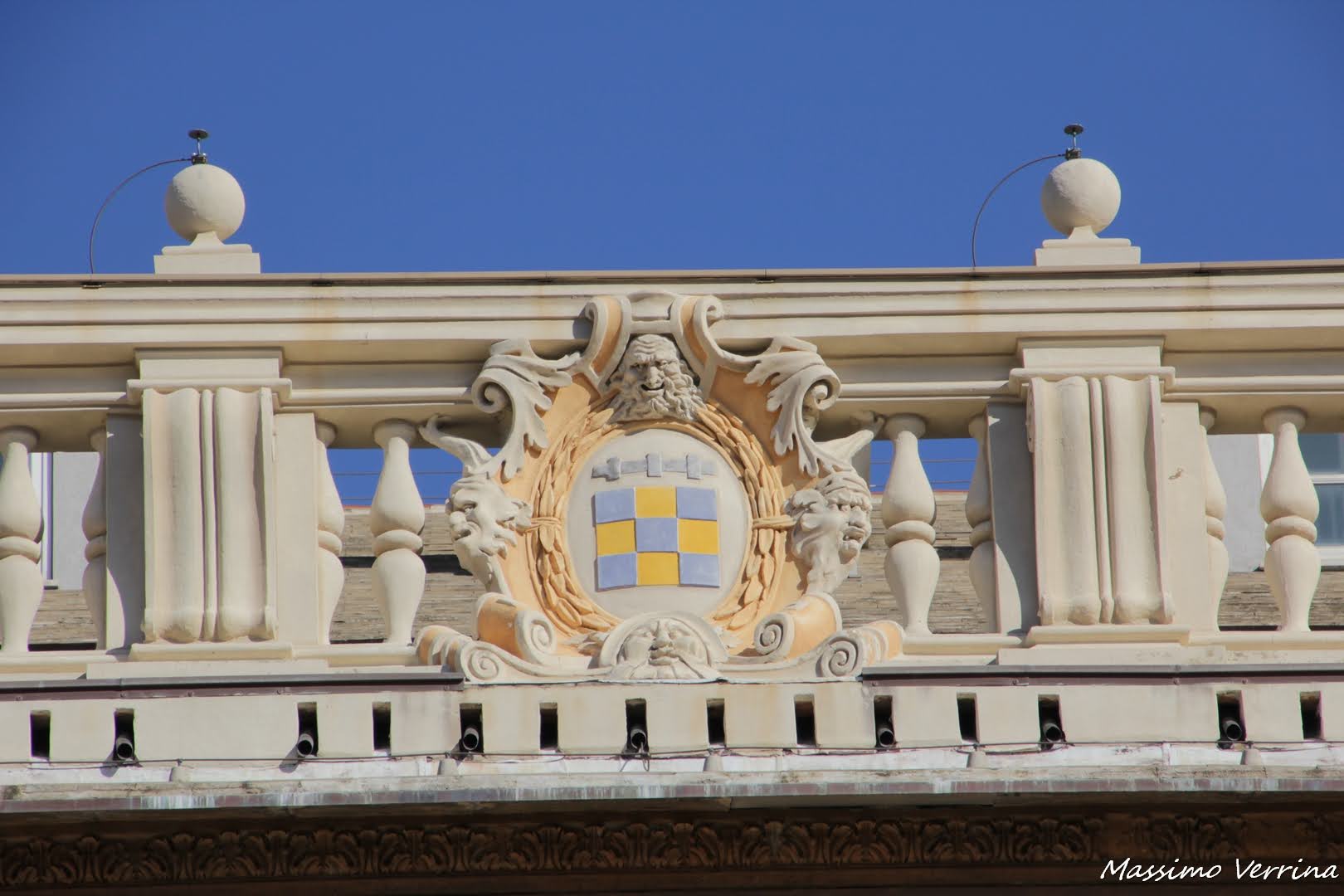 Col prossimo scatto vorrei farvi notare il bellissimo stemma presente sul cornicione in posizione centrale rispetto all’entrata sud del Palazzo….