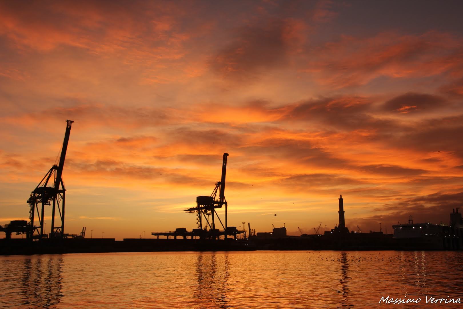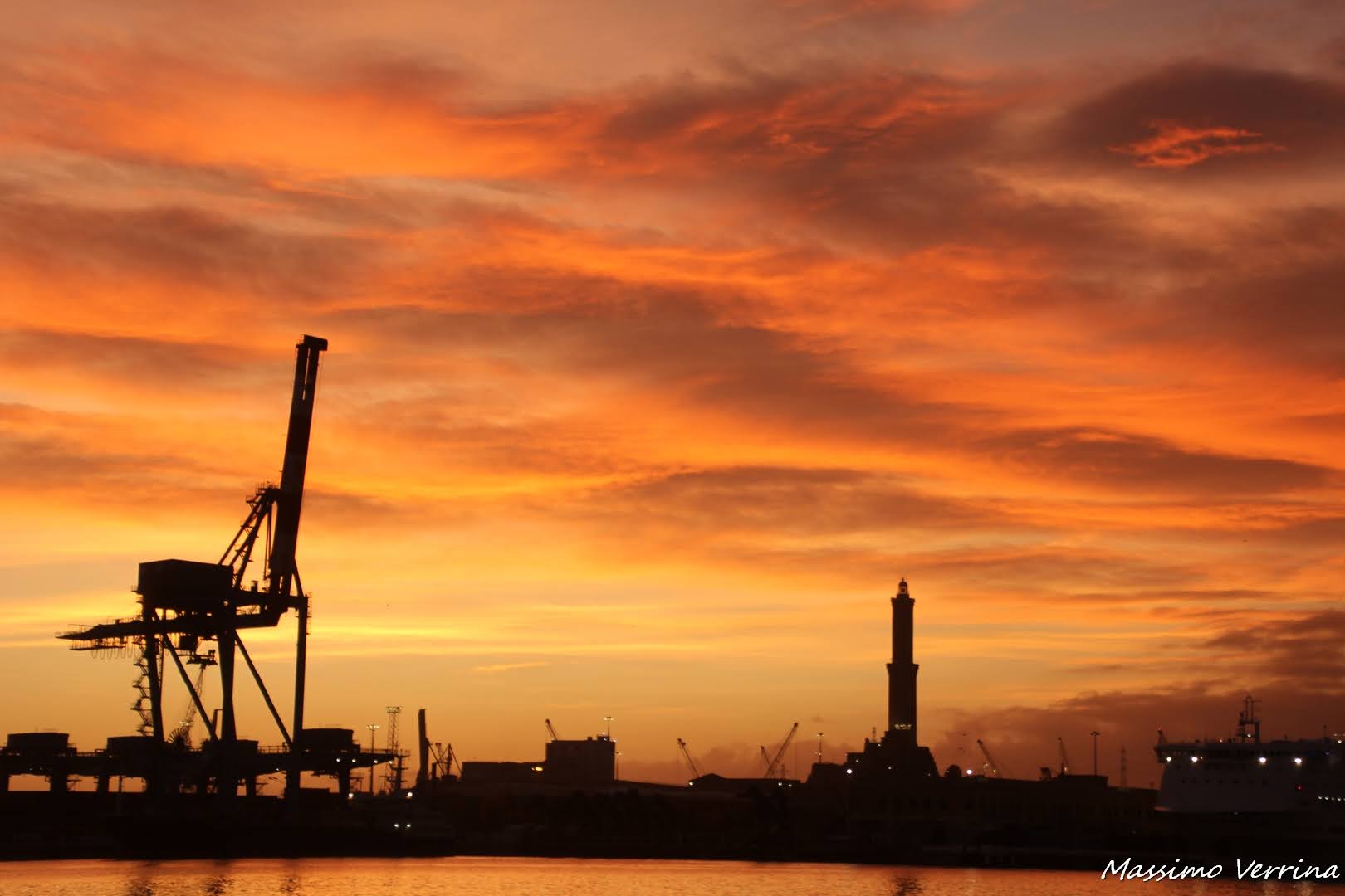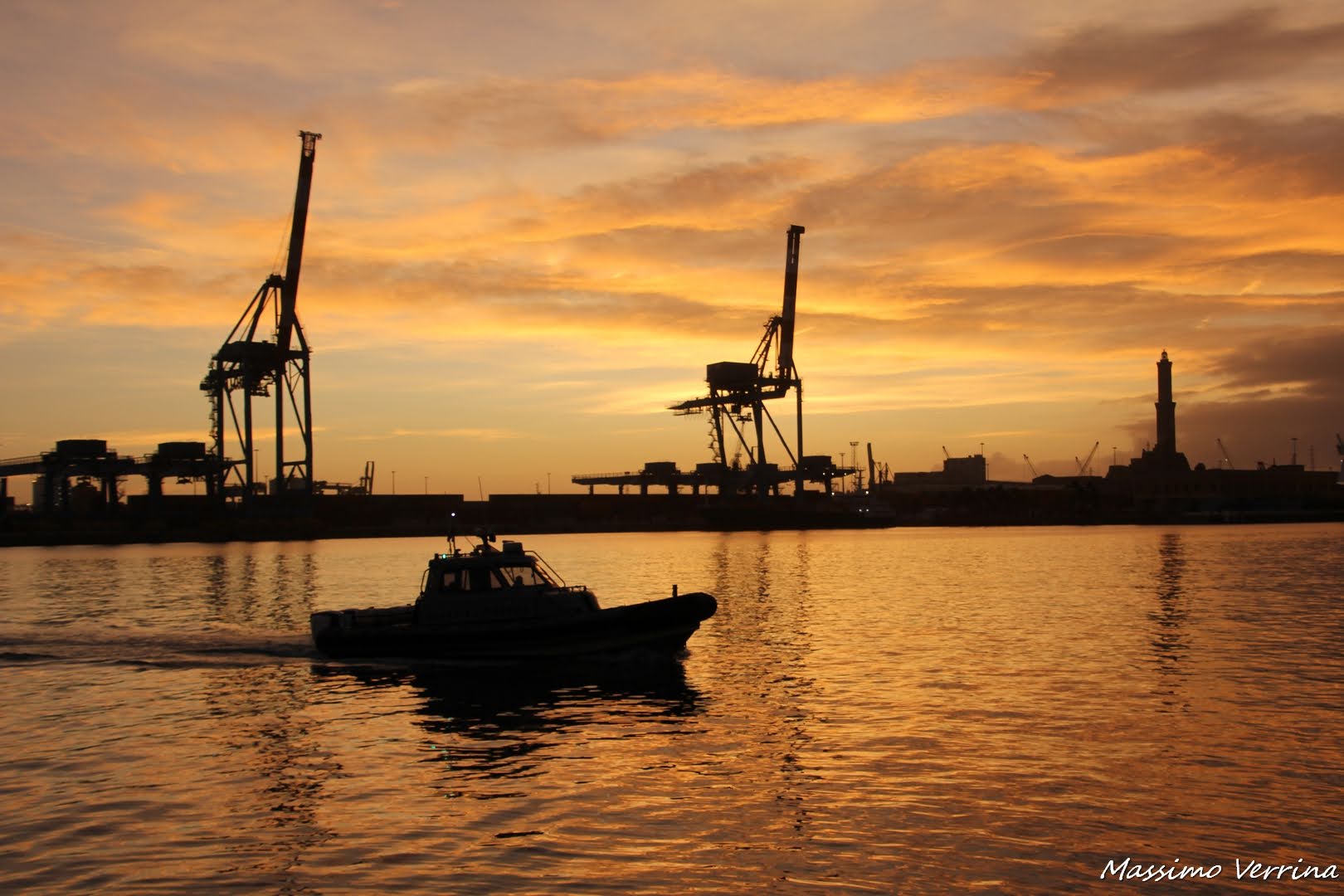 Nel prossimo scatto ho inserito vari elementi, una barca che entra in porto, le due gru e lo sfondo della lanterna, il tutto con con una costruzione visiva che cerca di avvolgere lo spettatore…