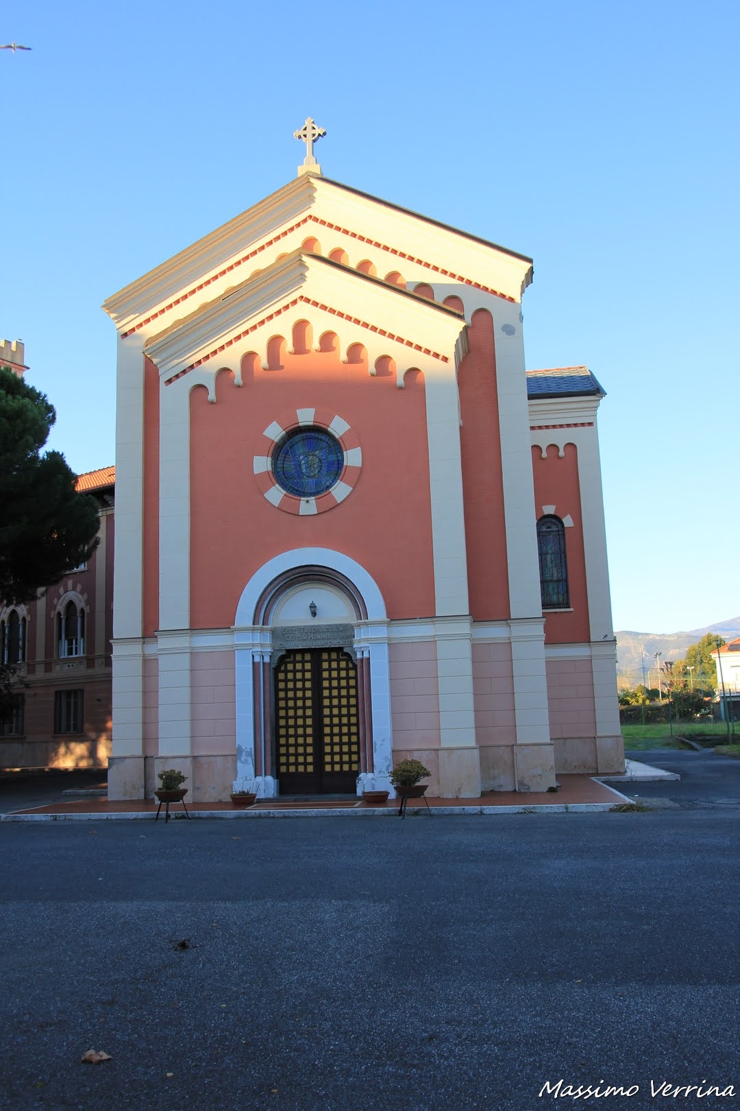 Dall’altra parte della passeggiata una chiesetta attira la mia attenzione, è racchiusa dentro a delle mura, entro da un cancello semi aperto, tutto è silenzio, ammiro la facciata colorata illuminata nella parte alta dagli ultimi raggi del sole….