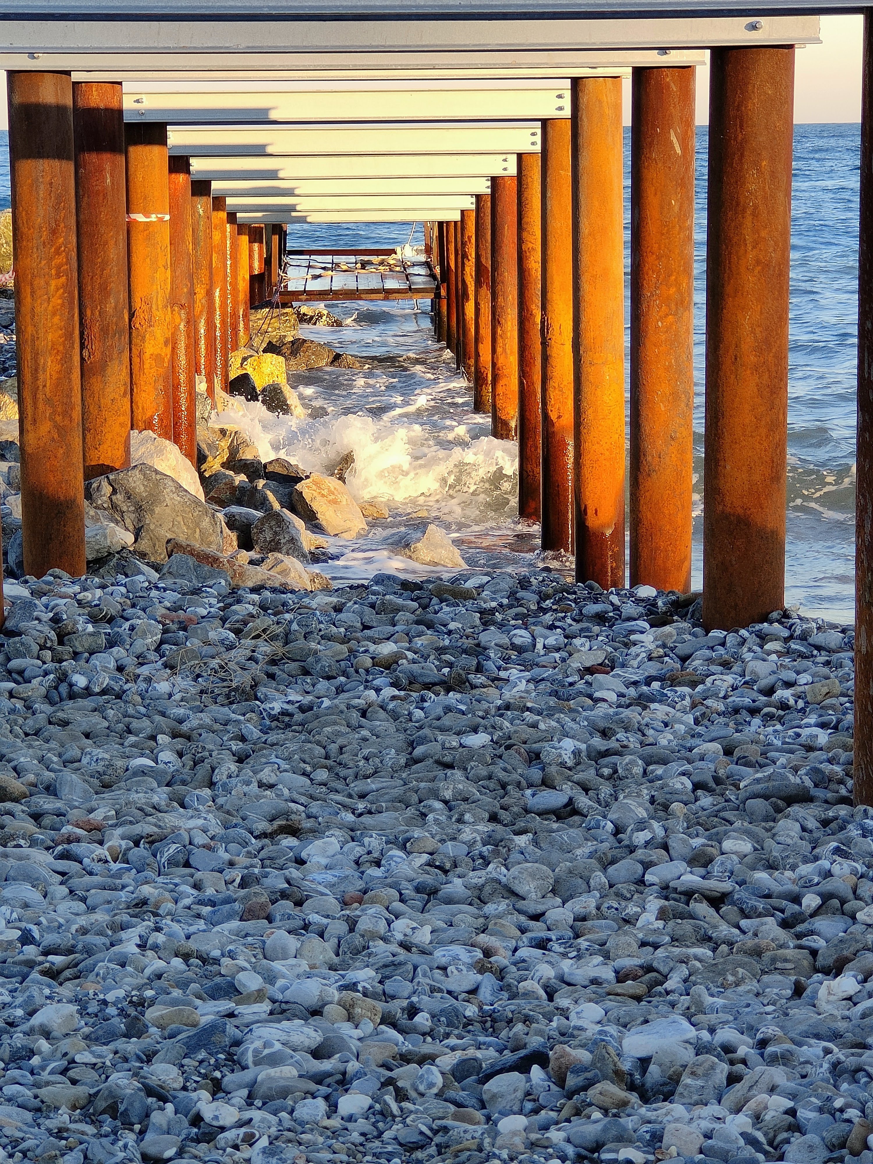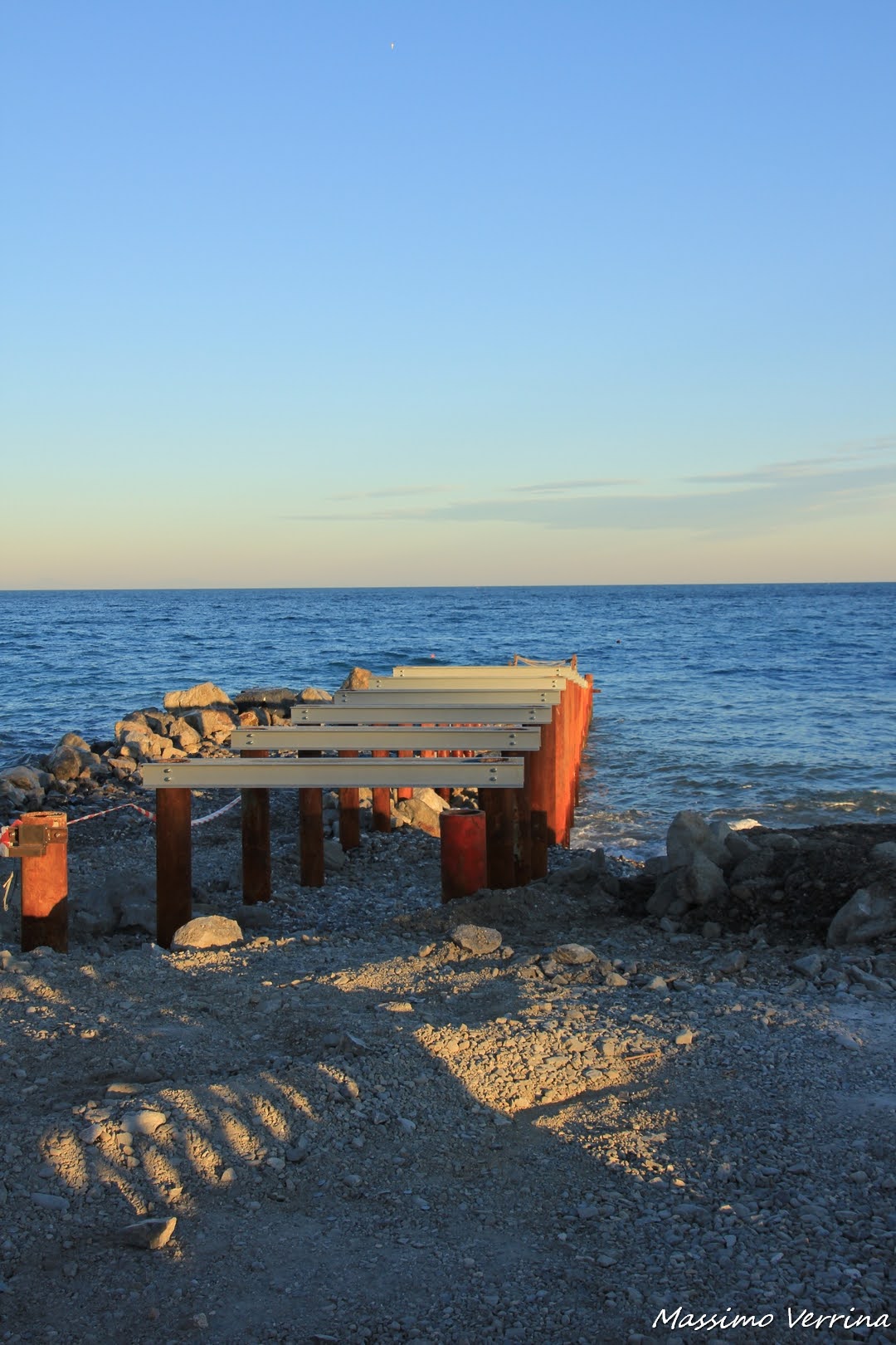 Poco distante ecco un’altra opera dell’uomo che m’incuriosisce dal punto di vista fotografico, stavano creando una discesa a mare per le barche, il cantiere era fermo, decido di avvicinarmi ed entrare nell’opera stessa per avere visioni nuove…