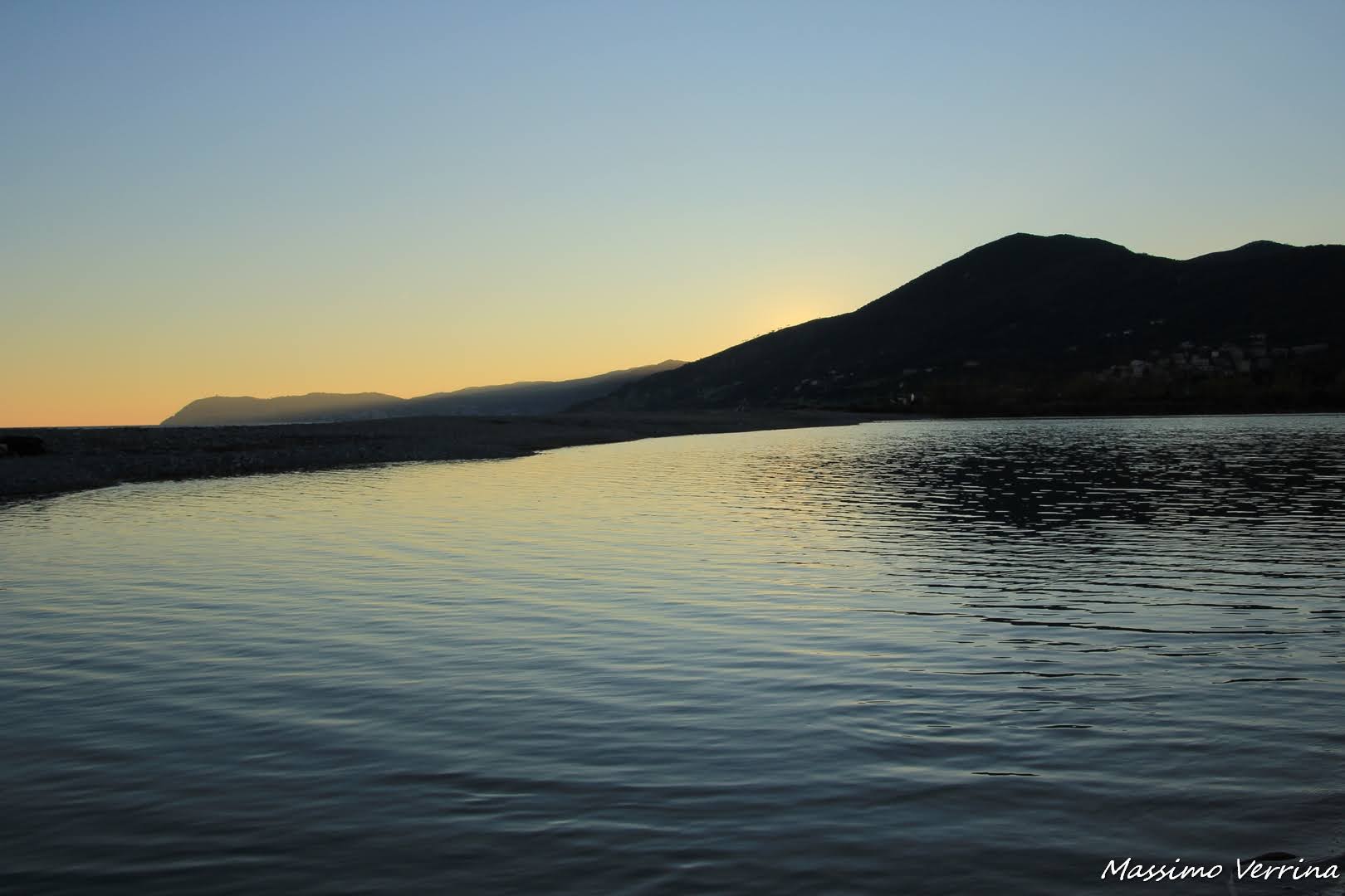 Faccio una corsa verso la fine della passeggiata per cogliere gli attimi del tramonto, giungo in prossimità della foce del Centa proprio quando l’ultimo raggio di sole si stava eclissando dietro i monti, riesco giusto a coglierne un piccolo spicchio, con tanto di raggi che accarezzano l’ombra dei monti…