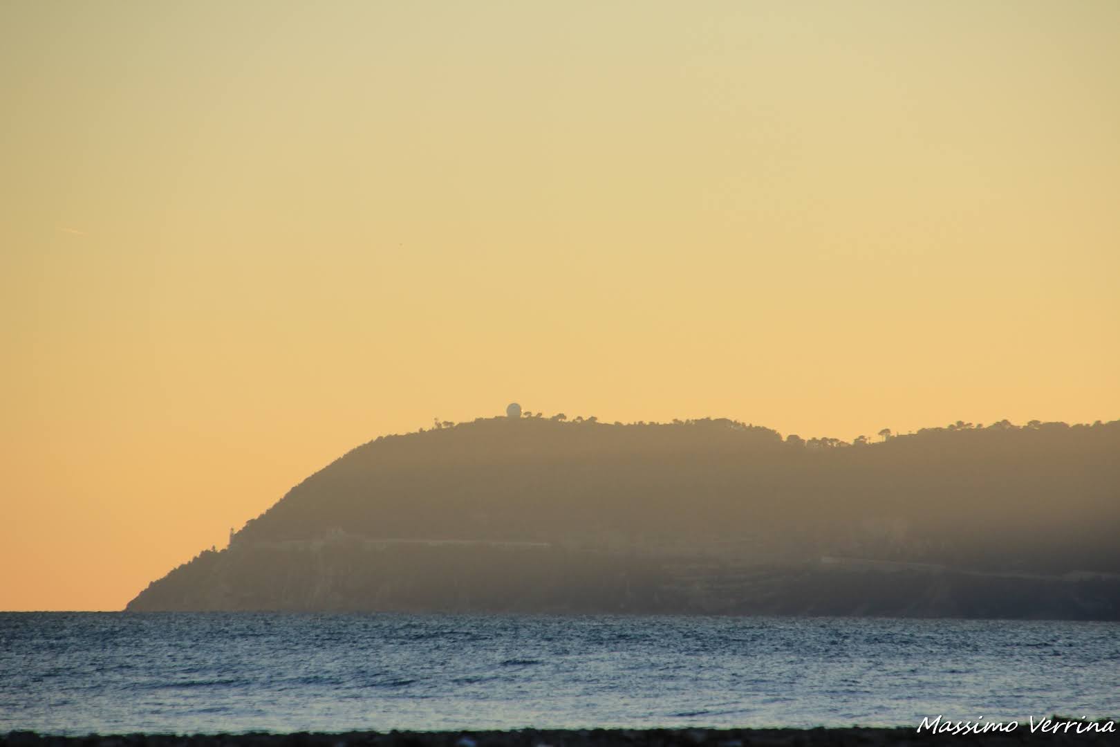 Sulla Riviera di Ponente a differenza di quella di Levante, il sole tramonta prima e si eclissa dietro i monti, i suoi raggi però filtrano l’atmosfera creando una suggestiva cornice di luce calda. Nel prossimo scatto ho colto anche dei gabbiani che volavano verso il mare seguendo proprio il cono di luce del sole….