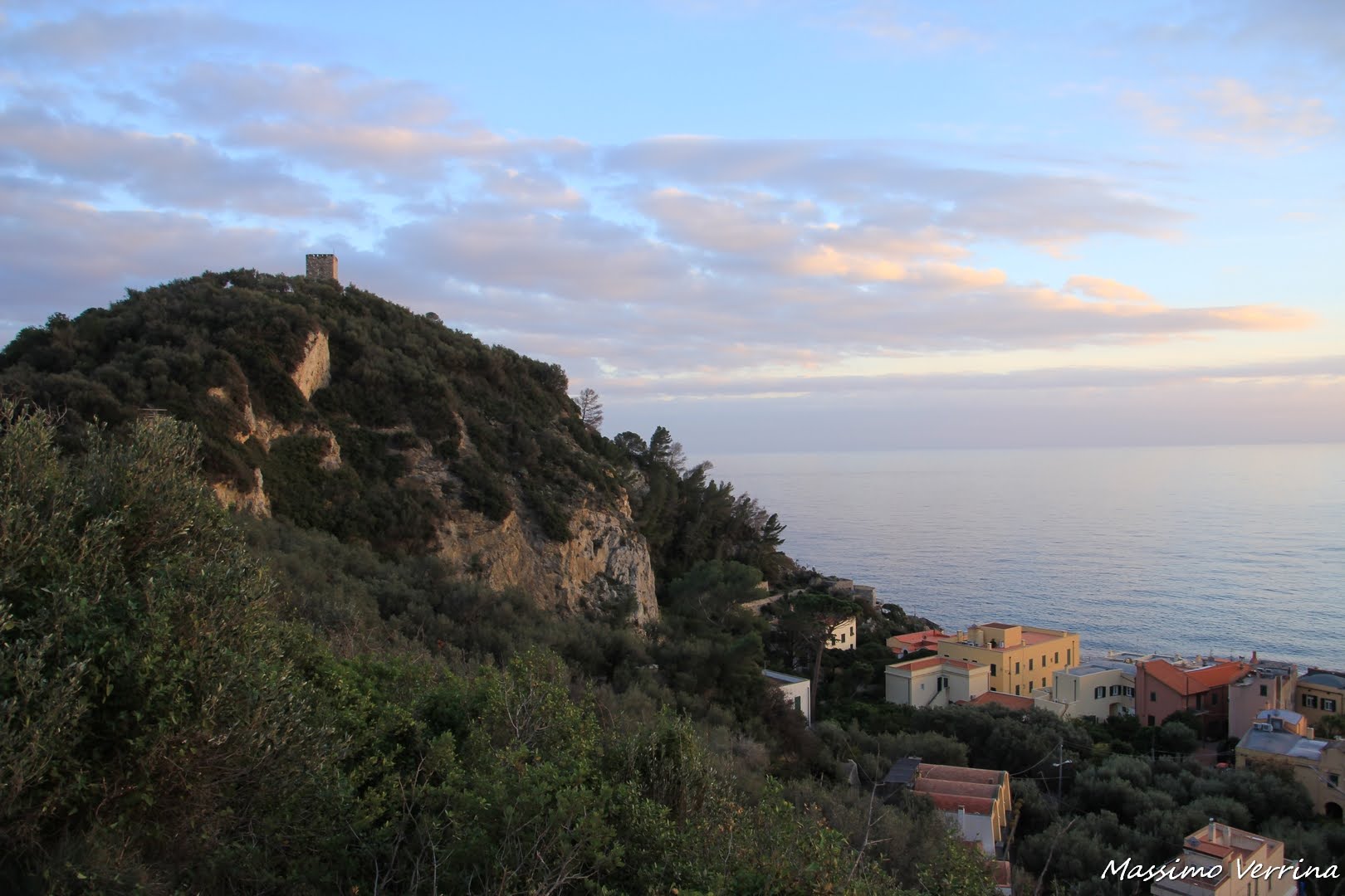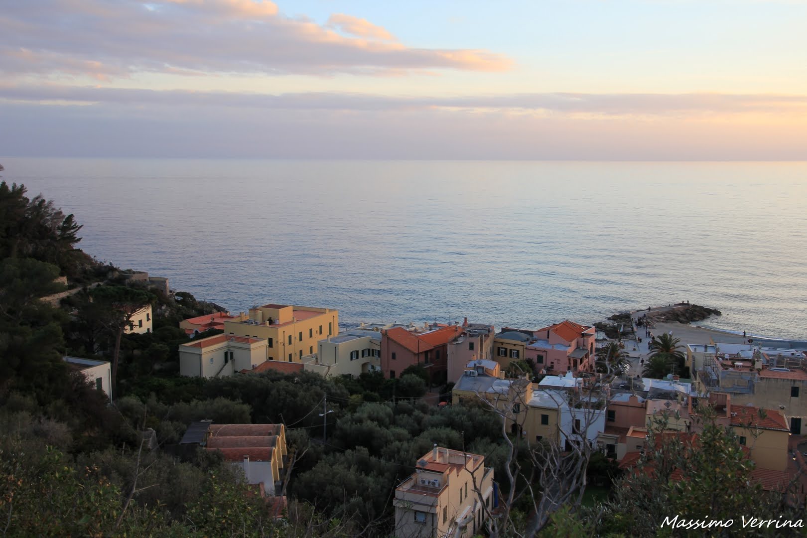 Sempre da questa altura le tinte pastello della vicina sera dipingono il panorama, e le case del borgo, parzialmente avvolte nel verde, creano una sensazione completamente diversa rispetto a quella osservata poco prima dalla spiaggia….