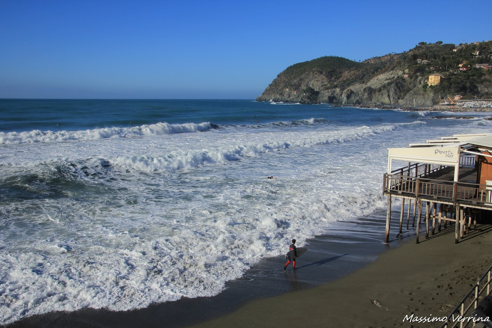 Benvenuti in questa nuova narrazione, in cui vi racconterò una bellissima camminata adatta a tutti, in quanto pianeggiante, che offre bellissimi scorci sul mare e permette di vedere diversi borghi liguri. E’ una giornata d’inverno, soleggiata ma con una mareggiata in corso. Iniziamo questo viaggio proprio con l’osservare il mare in burrasca, e come sempre in questi casi gli amanti del surf entrano in azione, vediamo alcuni protagonisti alle prese con le onde sulla spiaggia di Levanto…