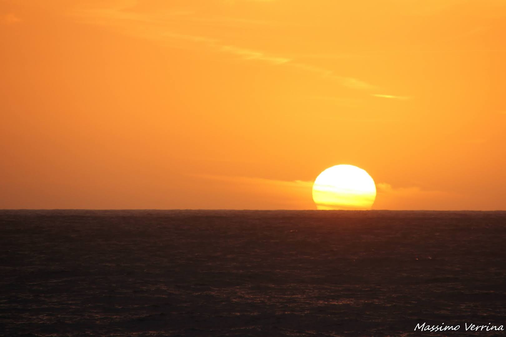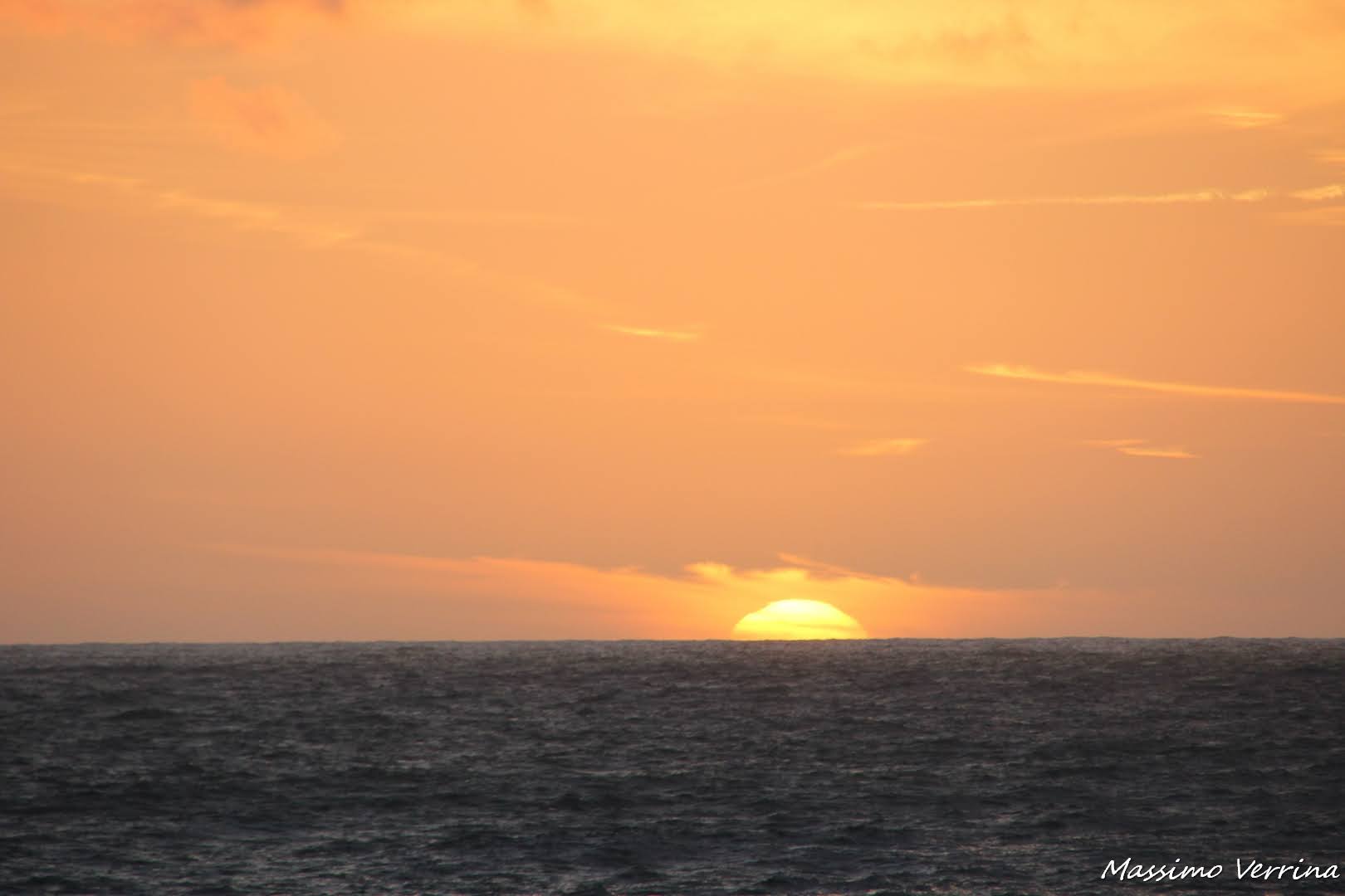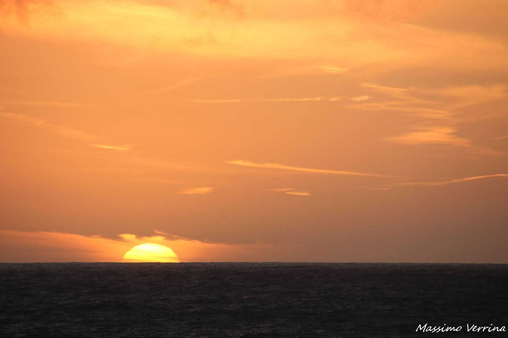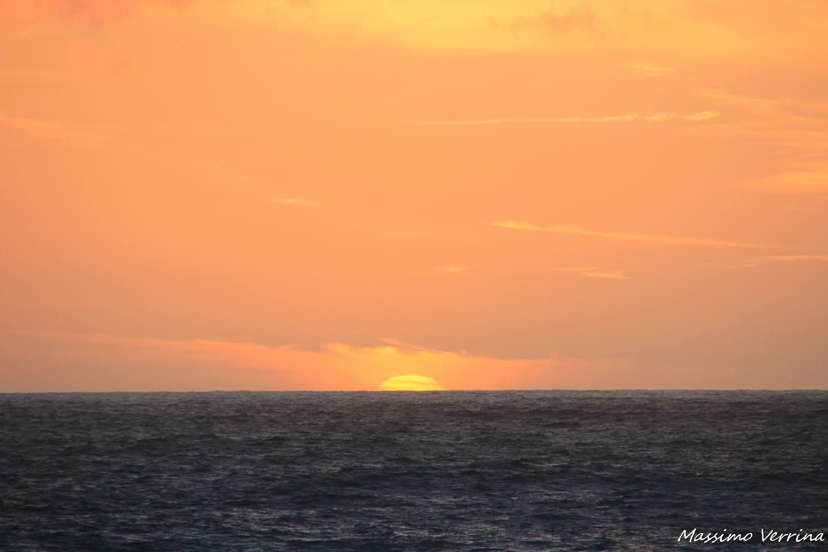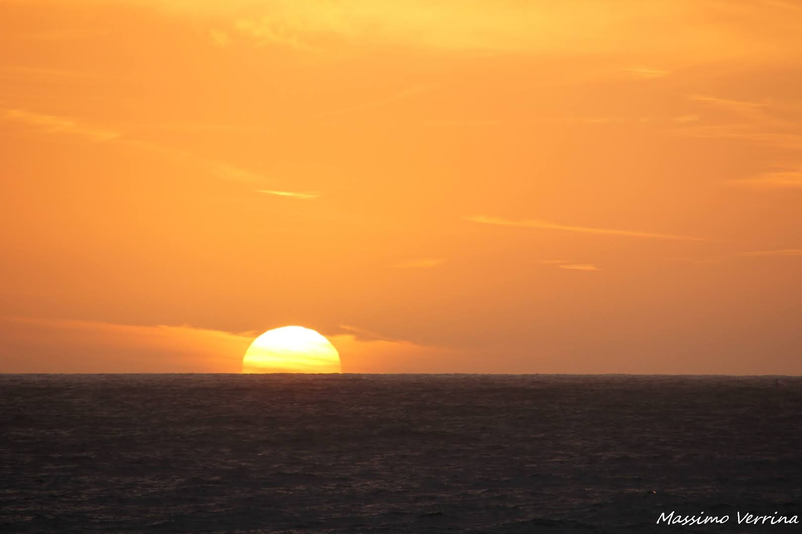 Eccoci arrivati al momento clou del tramonto, gli attimi finali, nonchè i più attesi e fotografati. Anche la casetta sul mare si tinge di rosso, in questo caso il colore della sua facciata diventa un tutt’uno col tramonto, sembra un effetto speciale, invece è proprio la natura a regalarci questa singolare prospettiva. Ed ora poesia….